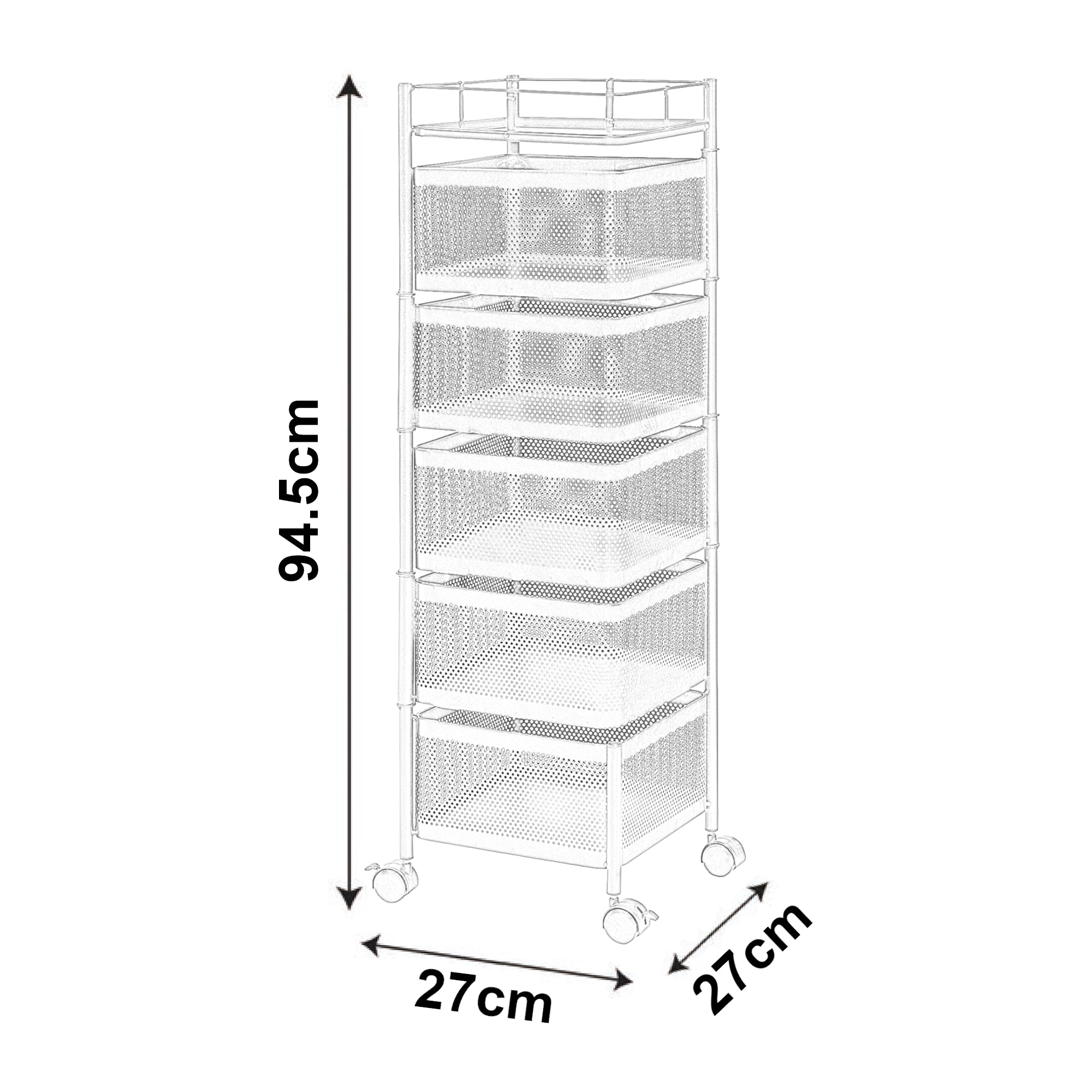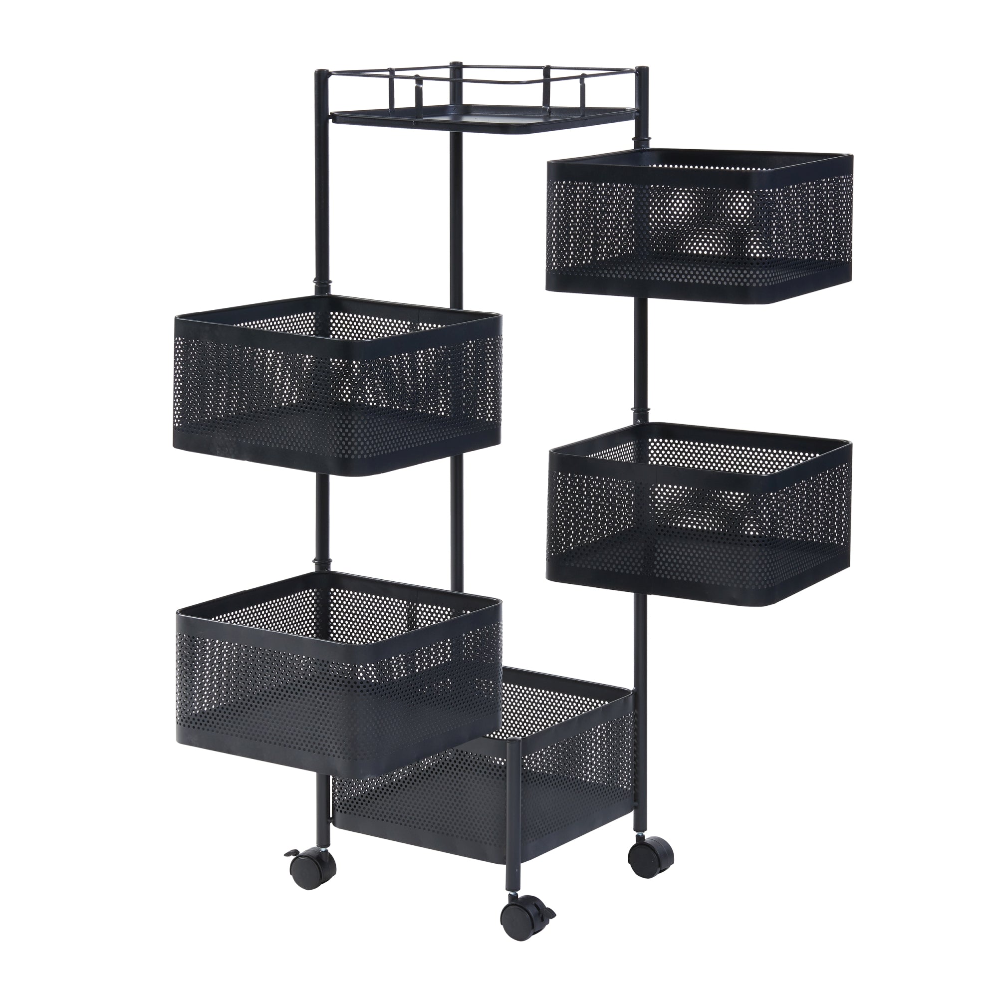 Notre desserte à roulettes est l'accessoire idéal pour votre maison ou votre espace de travail. Facile à déplacer grâce à ses 4 roulettes, elle offre une multitude de possibilités d'utilisation. Ses 5 étagères rectangulaires permettent un accès facile aux boissons, collations et autres objets. Les 4 corbeilles supérieures dépliables permettent d'atteindre et de ranger rapidement les objets sans effort. Son étagère en forme de plateau est parfaite pour poser les verres et les bouteilles. Avec son style intemporel, notre chariot de service s'harmonise aisément avec tous les styles de décoration.