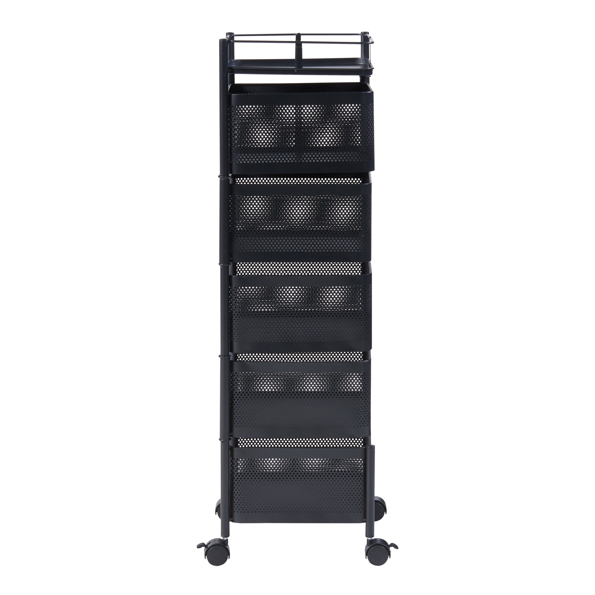 Chariot de service desserte cuisine salon meuble de rangement à 5 niveaux 95 x 27 x 27 cm acier noir 03_0009256