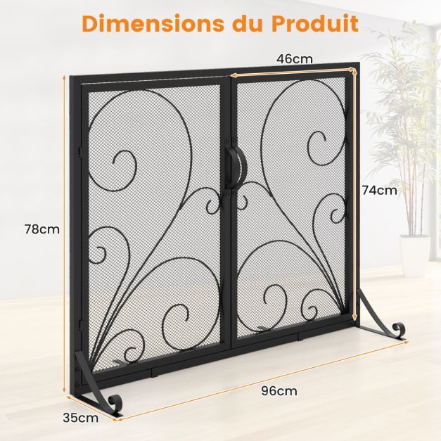 Écran de cheminée à double porte écran de protection pour foyer ouvert panneaux magnétiques supports arrière et avant pare-étincelles noir 20_0009702