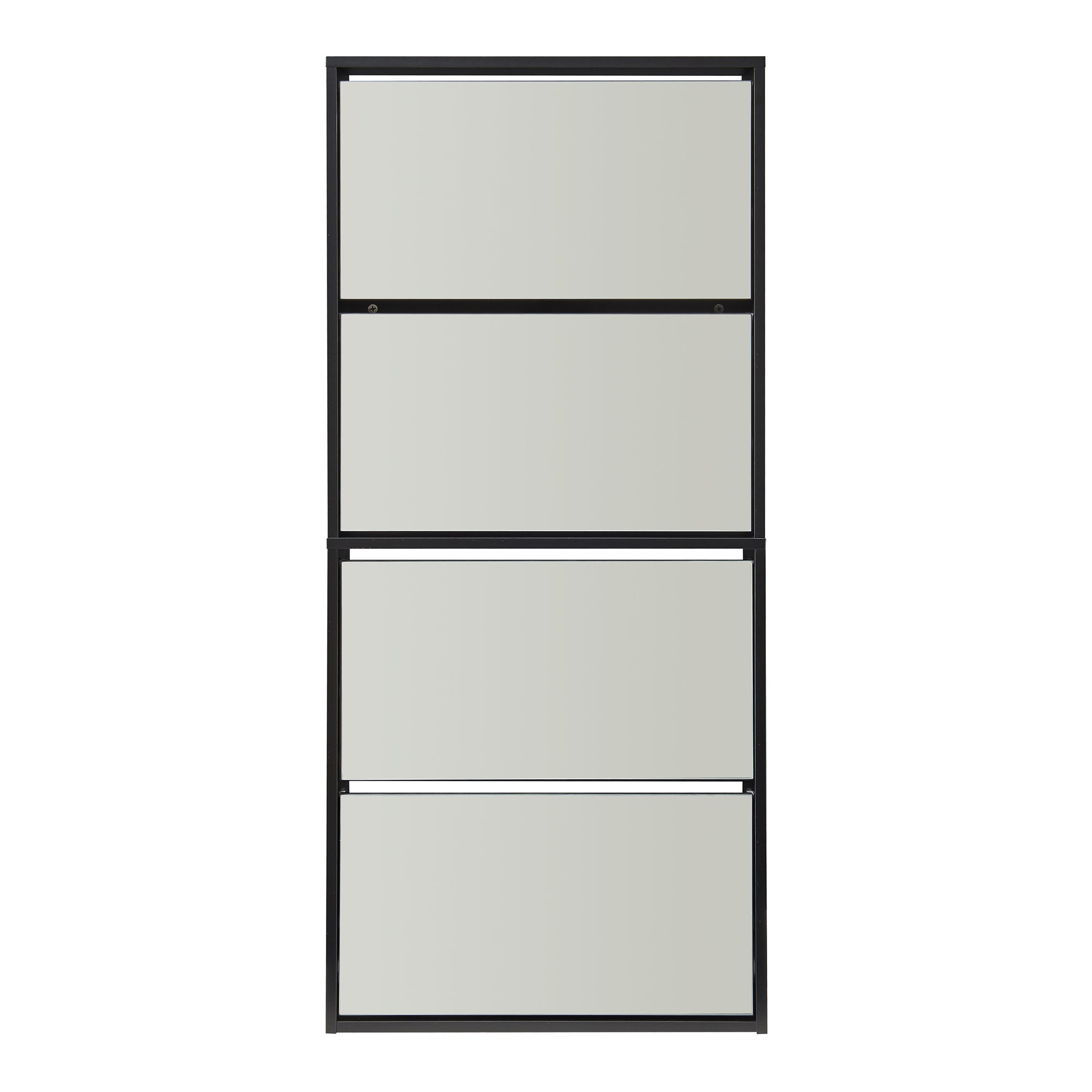 Meuble à chaussure rangement ranges-chaussures à 4 abattants avec miroir noir 03_0010118