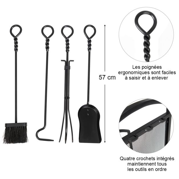 Pince et tisonnier pour remplacer le bois et attiser le feu