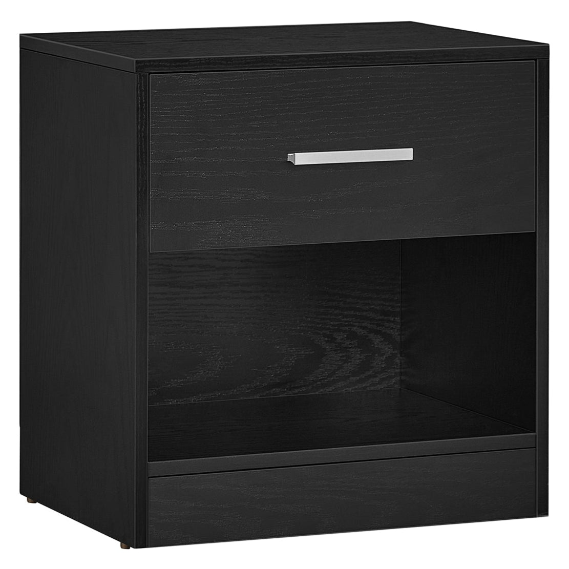 Table de chevet nuit table d’appoint avec tiroir poignée 28 x 39 x 41 cm compartiment ouvert table basse pour chambre salon noir 12_0007667