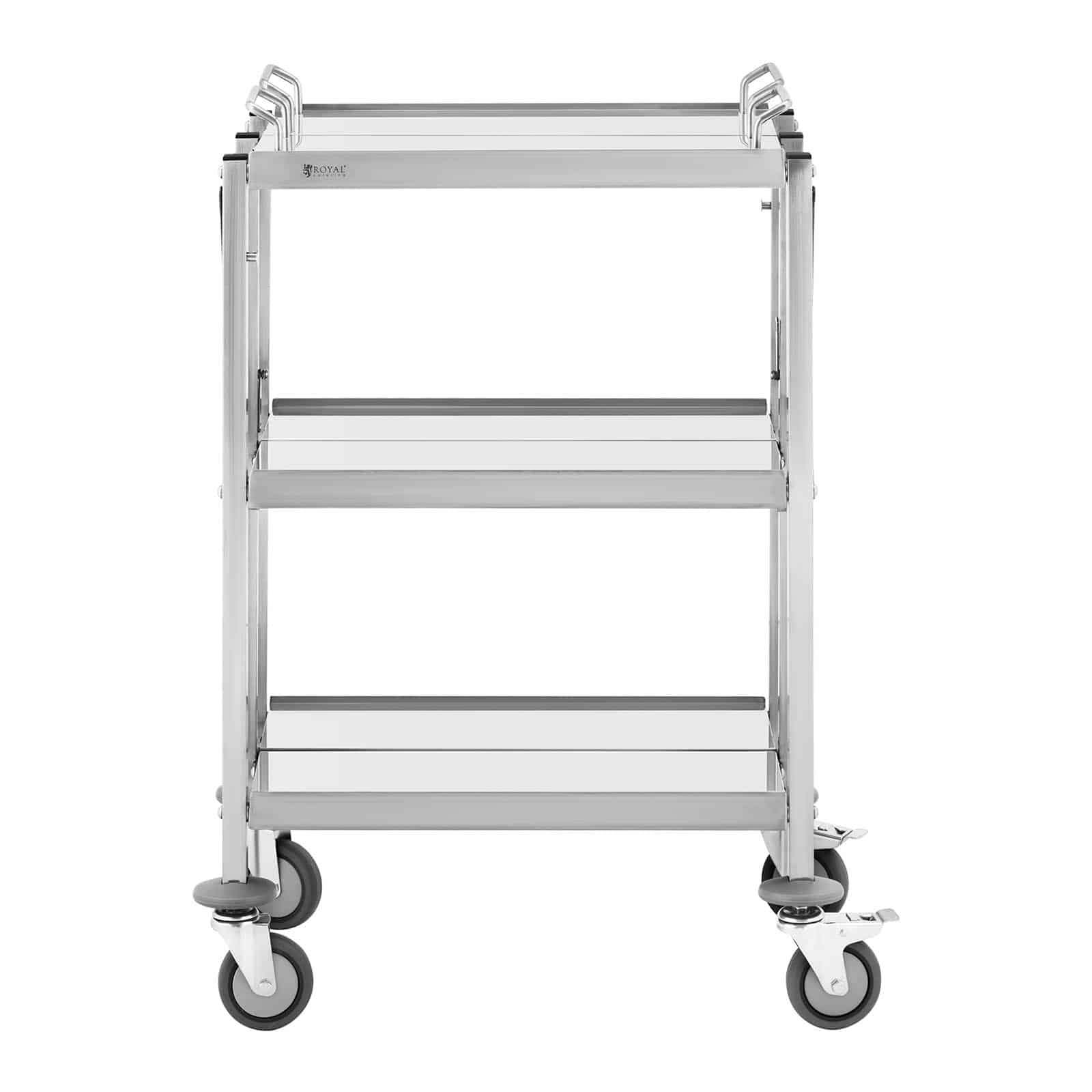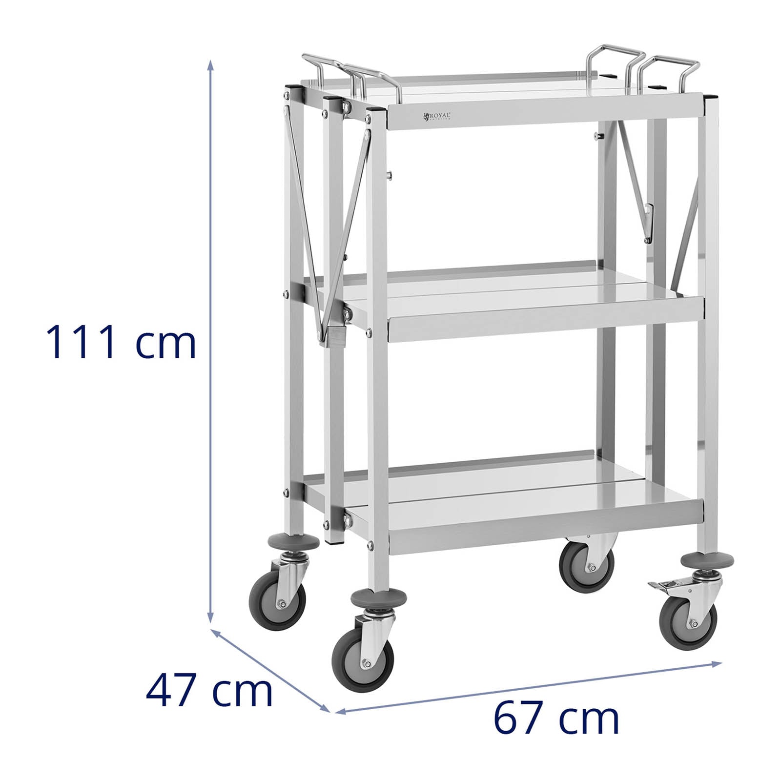Chariot de service 3 tablettes (2x) 50 x 83 / 40 x 58 cm 90 kg pliable acier inoxydable 14_0005038