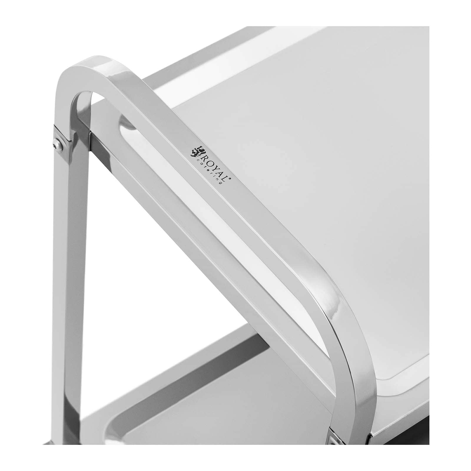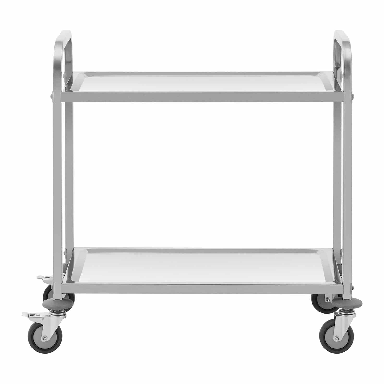 Ce chariot de service est fabriqué entièrement en acier inoxydable de qualité.