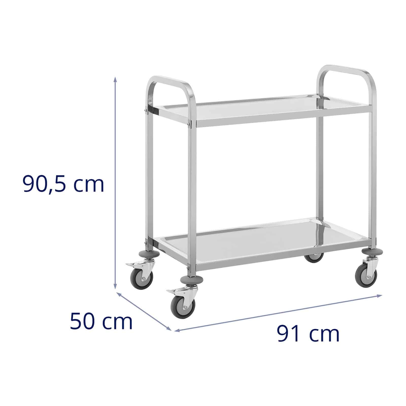 Charriot de service en acier inoxydable charriot de service restaurant (Capacité de charge : 72 kg, Espacement des plateaux : 520 mm, Taille des plateaux : 95 x 50 cm) 14_0005044