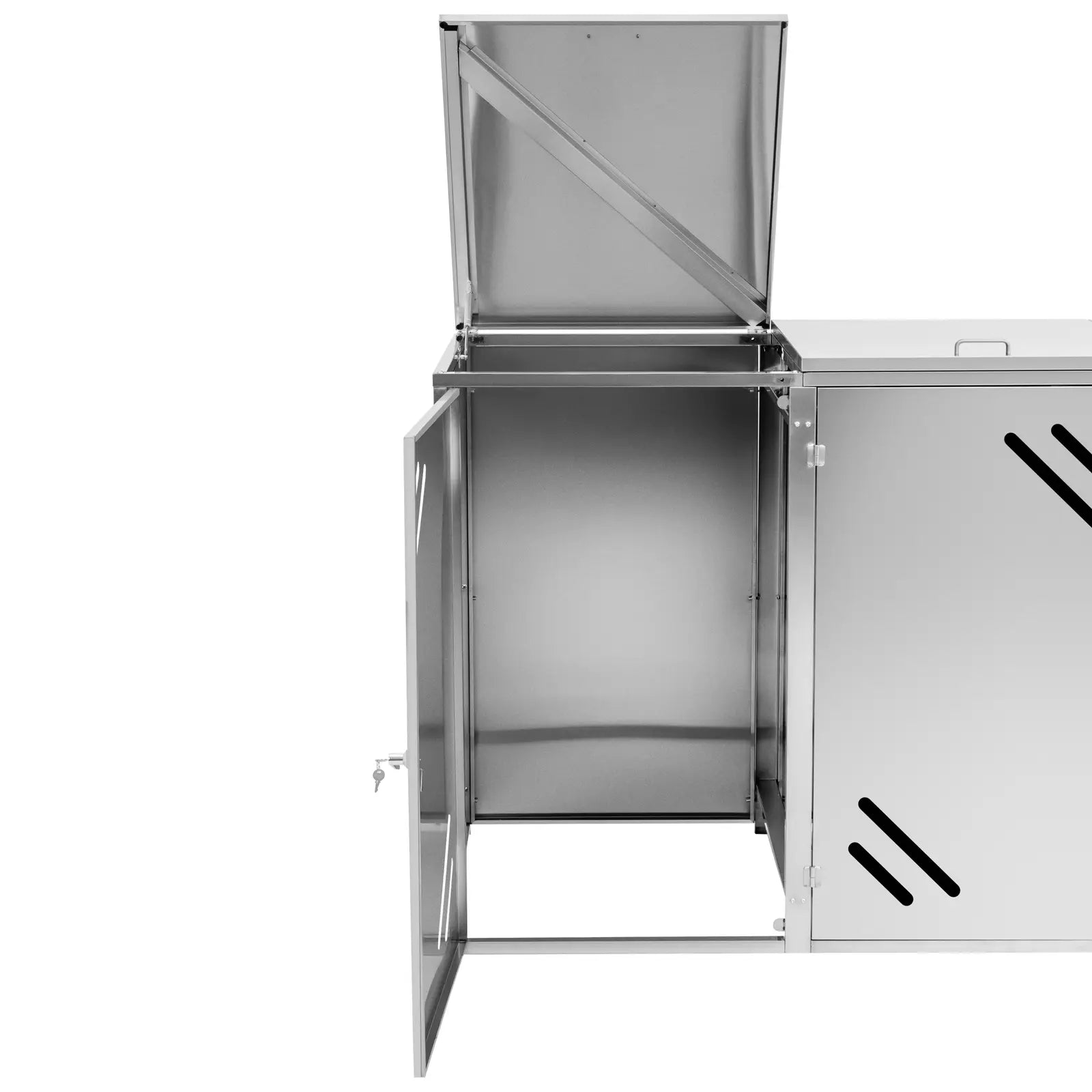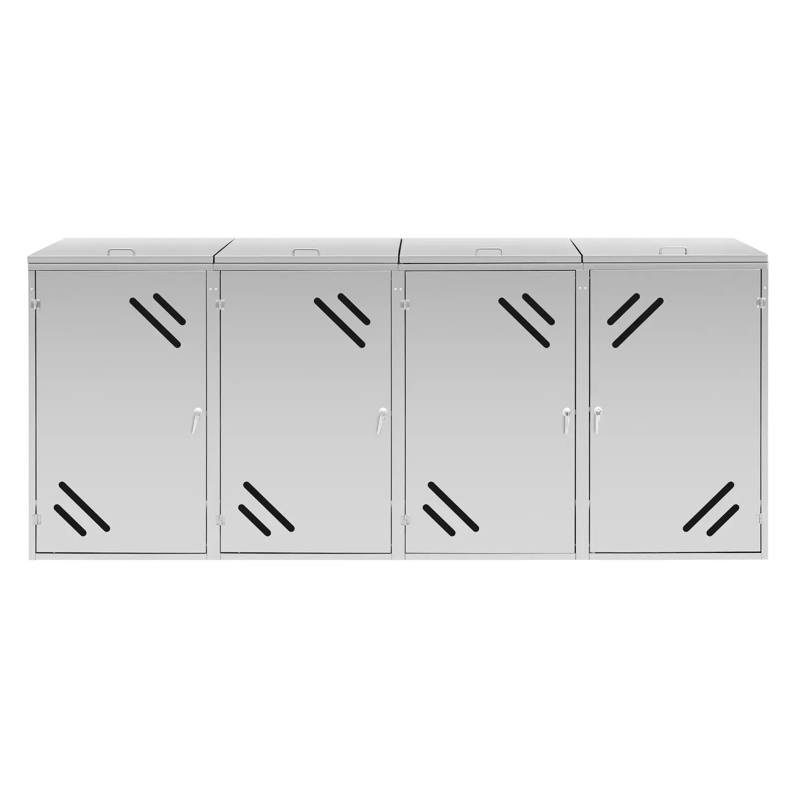 Cache-poubelle habillage abri 4 x 240 litres fentes d'aération acier inoxydable 201 argent métallisé 14_0008487