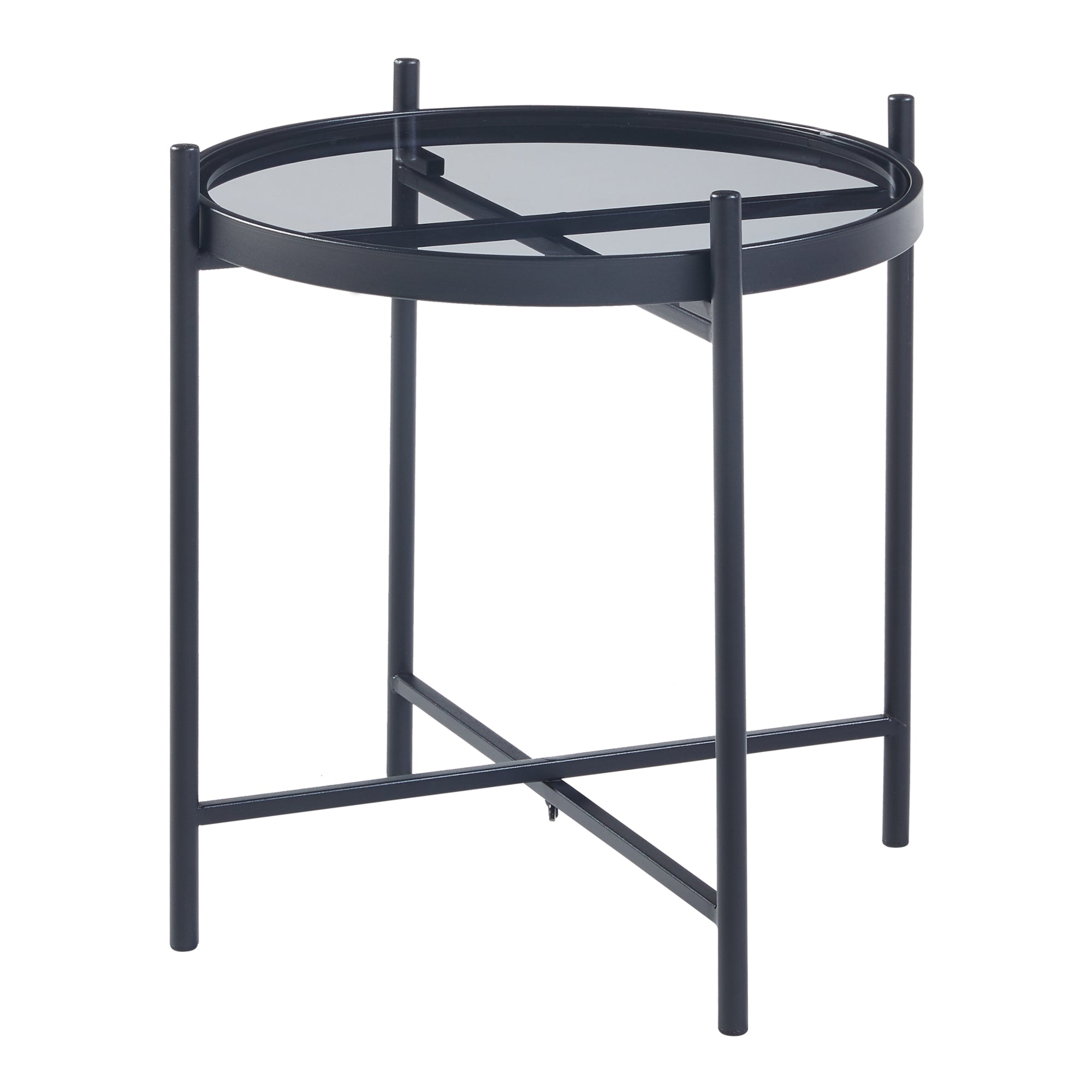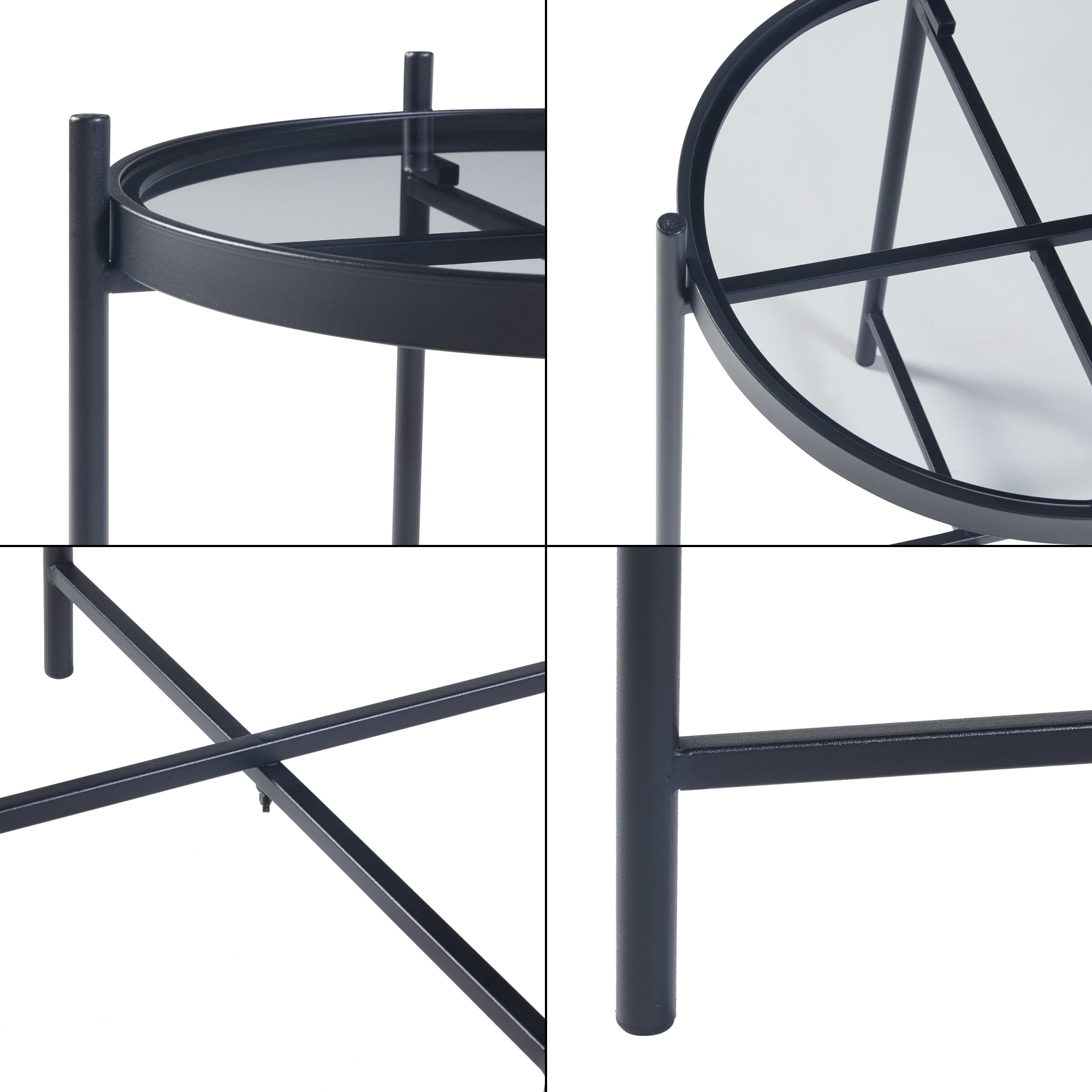 Table d'appoint ronde verre trempé 46 x 42 cm métal noir 03_0010954