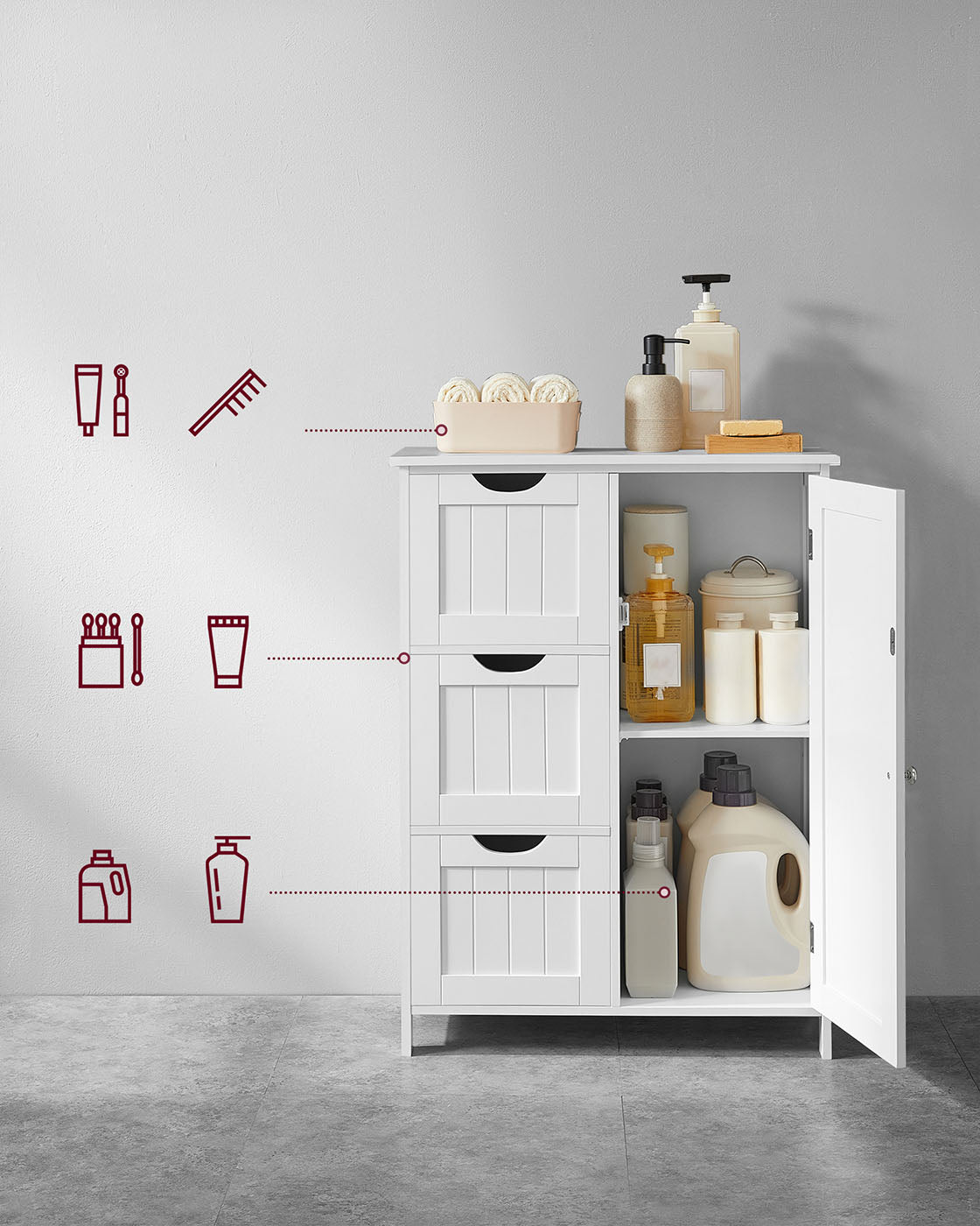Meuble de salle de bain meuble de rangement meuble avec 3 tiroirs et 1 placard planche réglable en hauteur 60 x 30 x 81 cm blanc 12_0006482