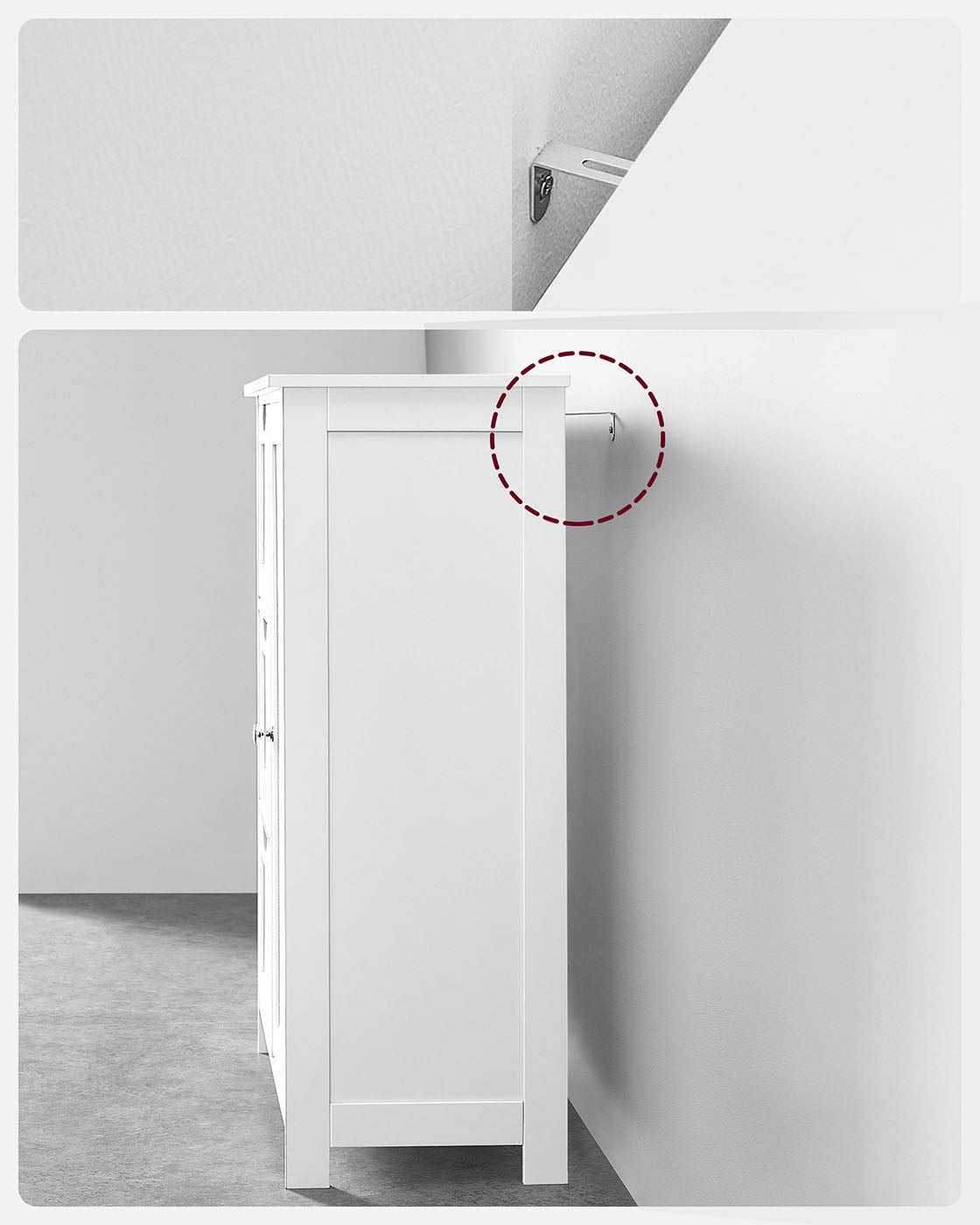 Conçu en bois d’ingénierie de classe E1, il garantit robustesse et stabilité. Pour plus de sécurité, un dispositif anti-basculement est fourni afin de fixer le meuble au mur.