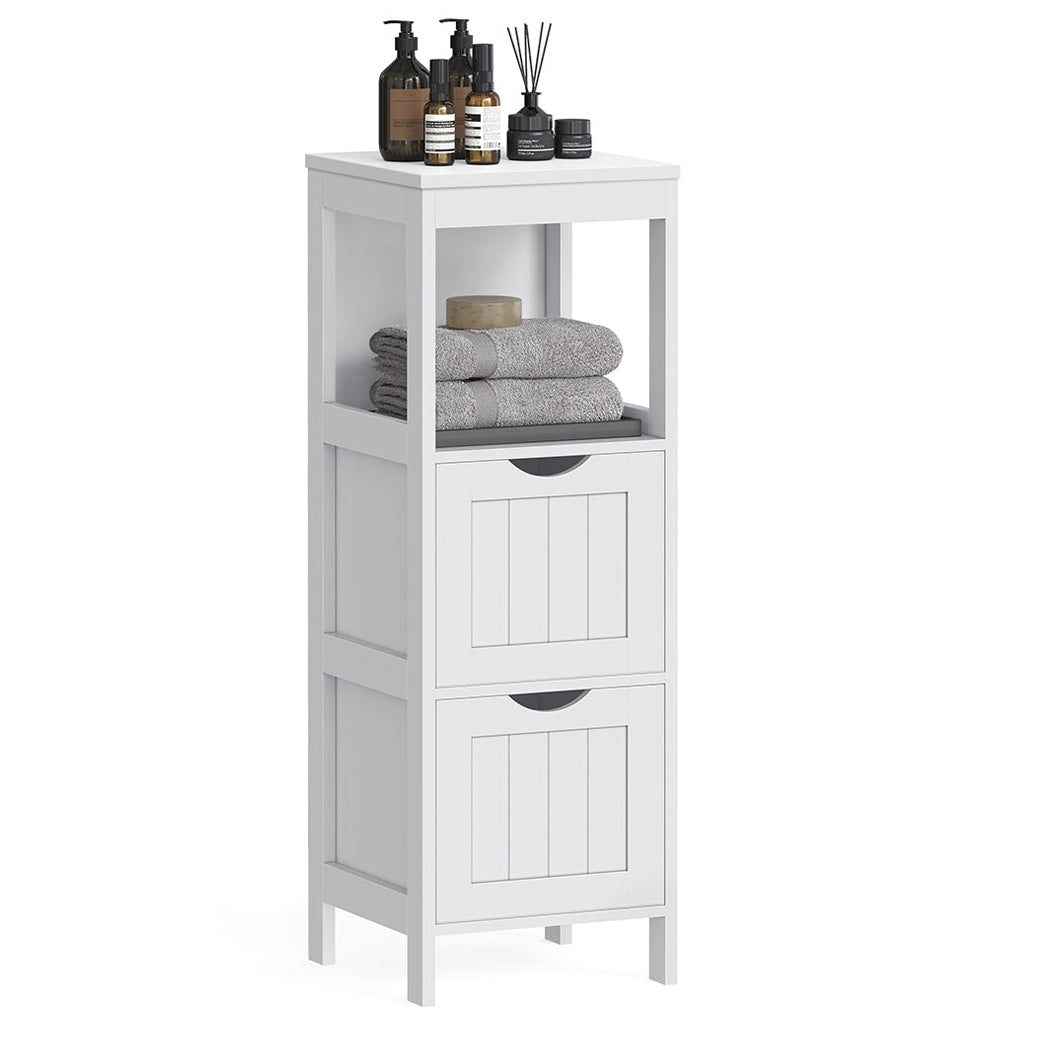 Meuble de salle de bain sur pied meuble de rangement table de chevet armoire d'angle avec 2 tiroirs blanc 12_0006504