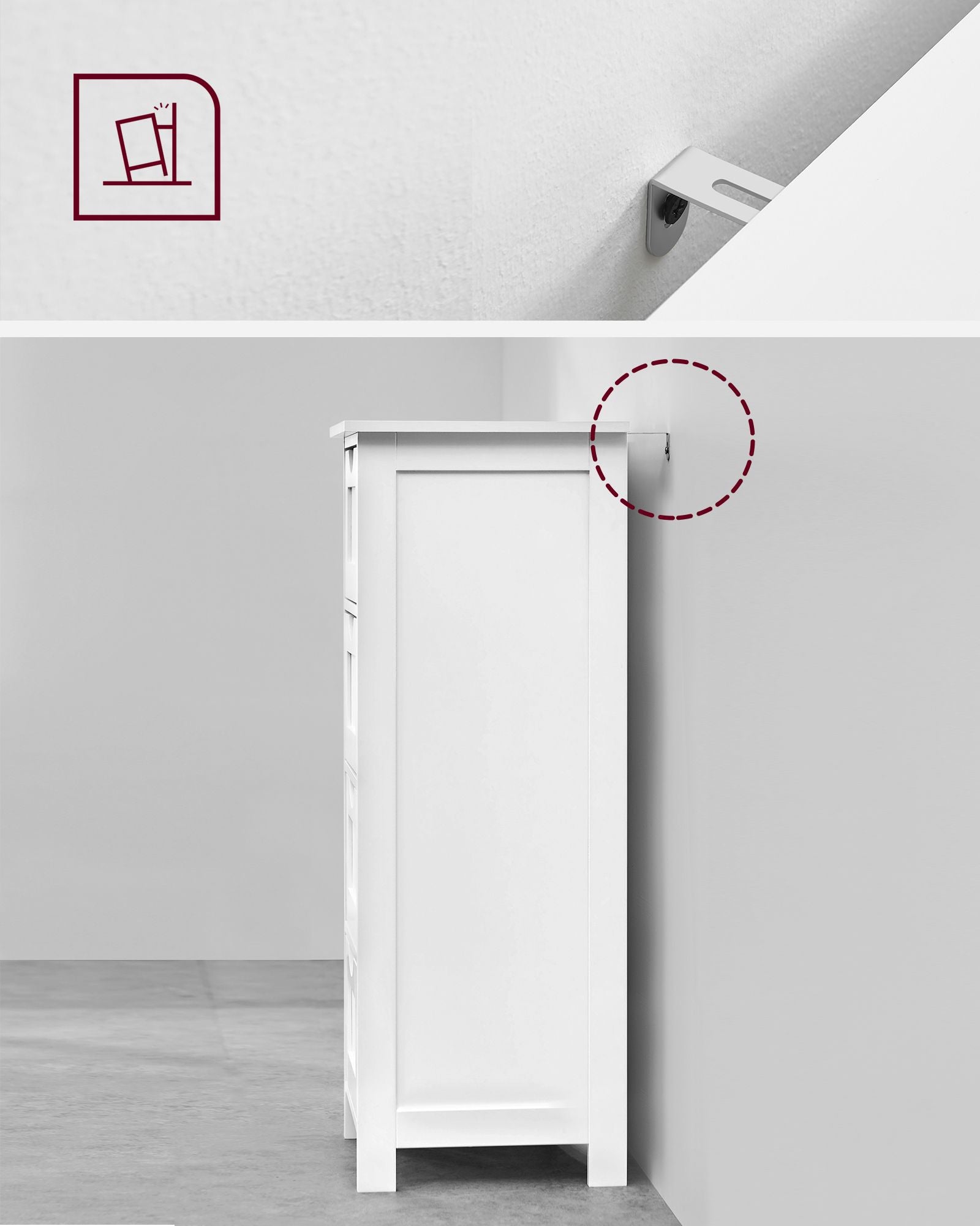 Fabriqué en panneaux MDF de qualité (classe E1), ce meuble allie robustesse et stabilité. Il est équipé d’un dispositif anti-renversement pour plus de sécurité.
