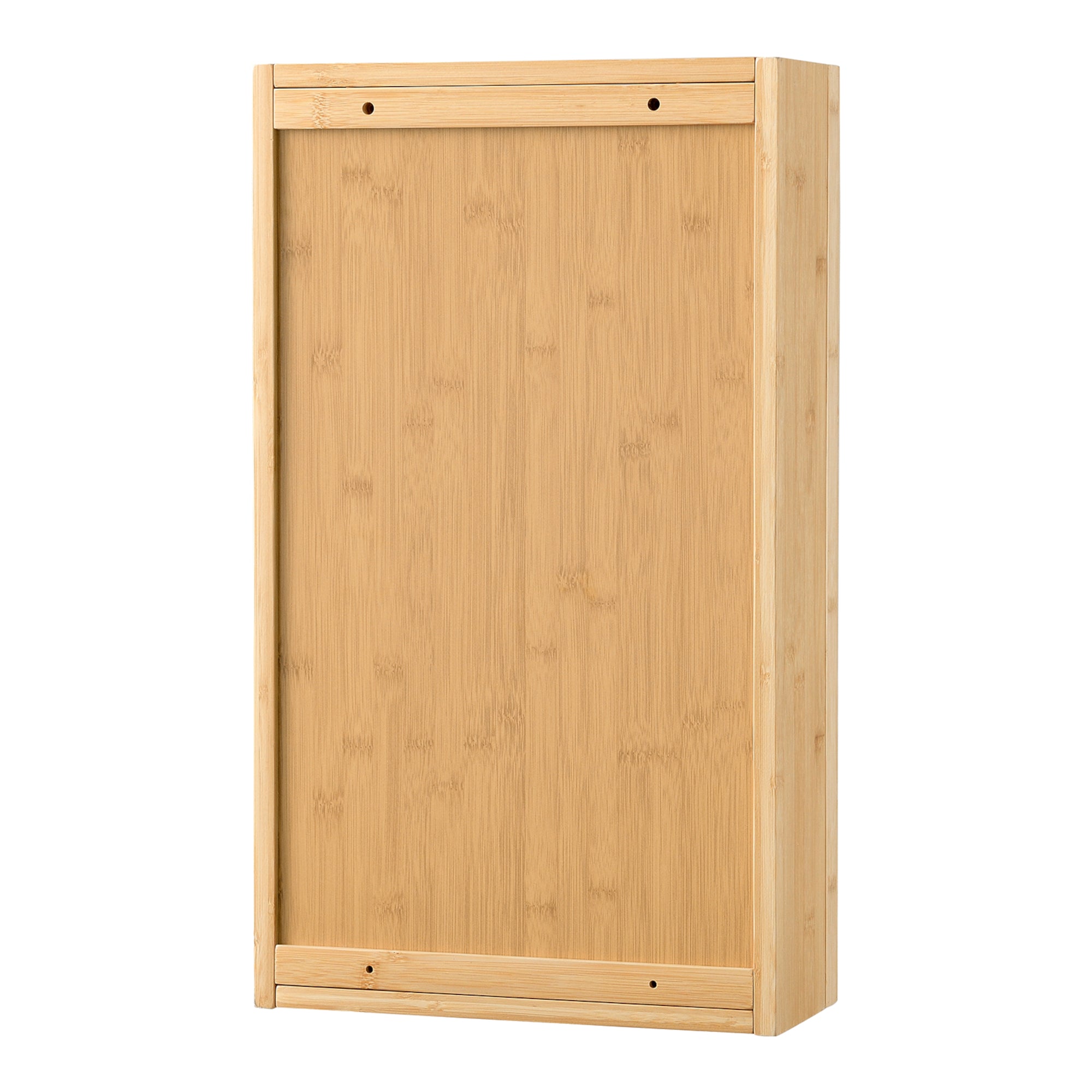 Ce placard moderne à suspendre fournit des espaces de stockage pratiques dans votre salle de bain derrière la porte à miroir. Un choix esthétique et écoresponsable étant donné que le meuble est fabriqué de bambou.