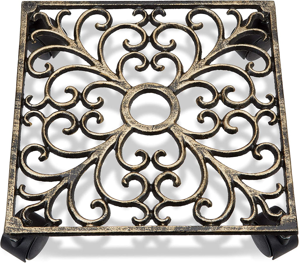 Porte-plantes à roulettes carré en fonte 13_0002225_2