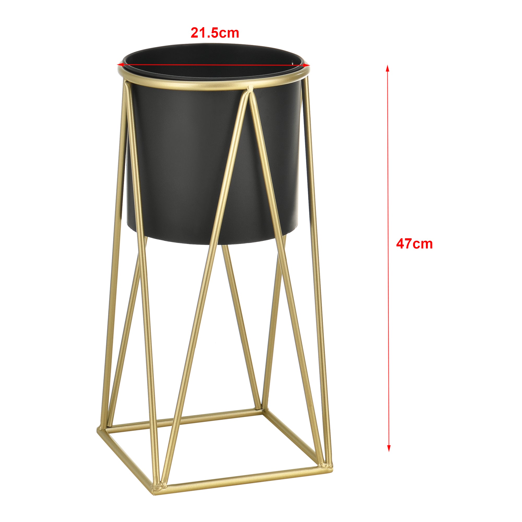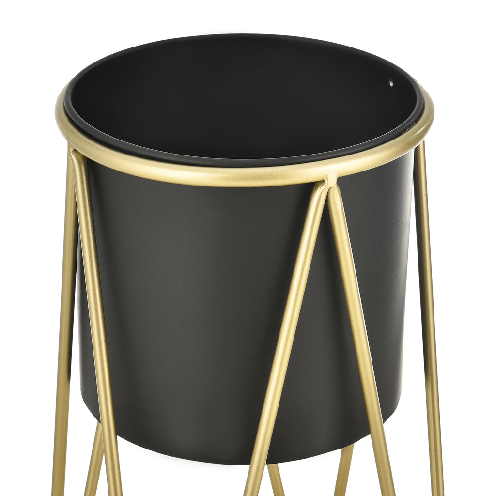 Set de 2 supports de plante cache-pot pot de fleur bac vase métal laiton et noir 03_0006041