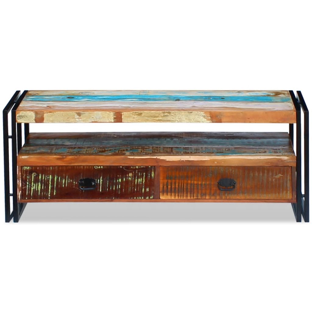 Ce meuble TV au style rétro, fait en bois de récupération massif, sera un ajout indémodable à votre maison.