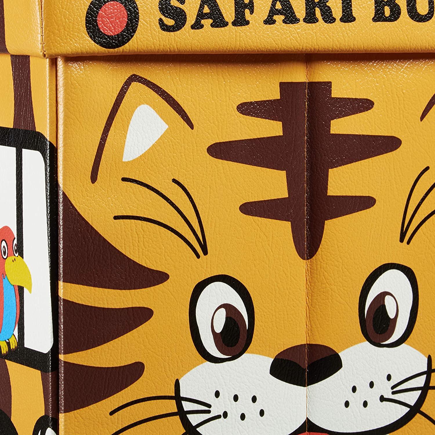 Coffre à jouets synthétique boîte couvercle tabouret pouf enfant pliable orange 13_0000781_2