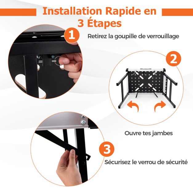 Établi pliable avec 2 pinces et 4 serrages table de travail portable avec 3 boîtes à outils banc de menuiserie charge 454 kg pour garage orange 20_0009707
