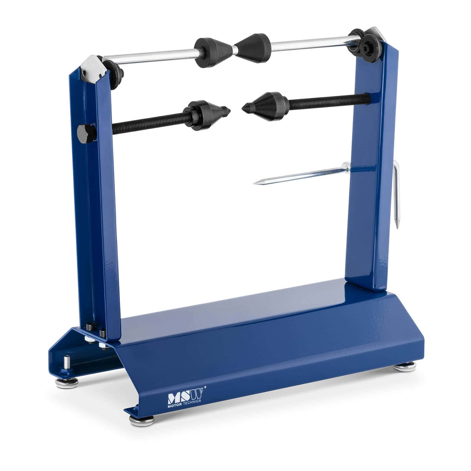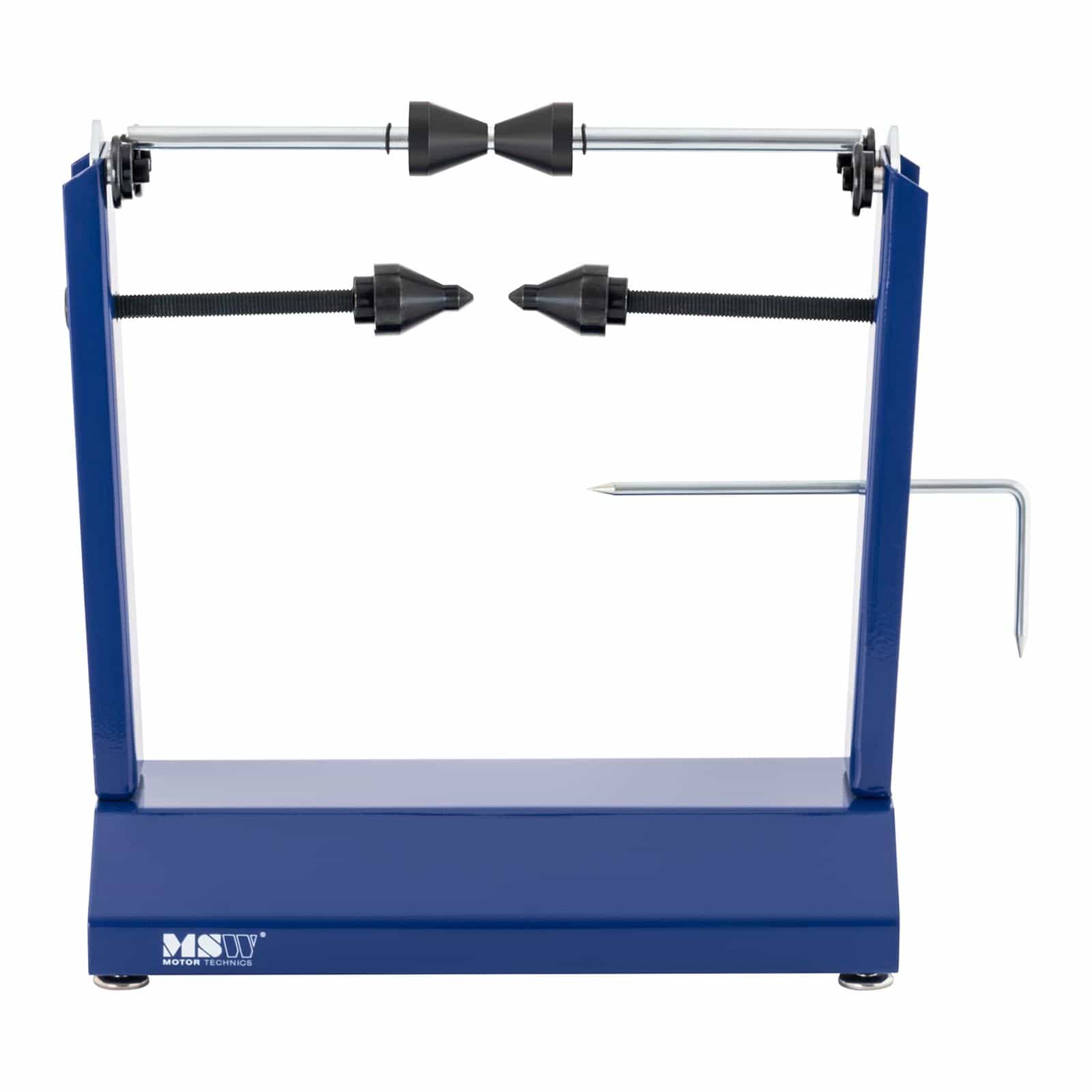 À l'aide de l'équilibreuse manuelle pour pneu de moto, le spécialiste de l'outillage automobile, vous remarquerez tout de suite à quel endroit une roue qui vibre anormalement est voilée, et saurez ce qu'il faut corriger.