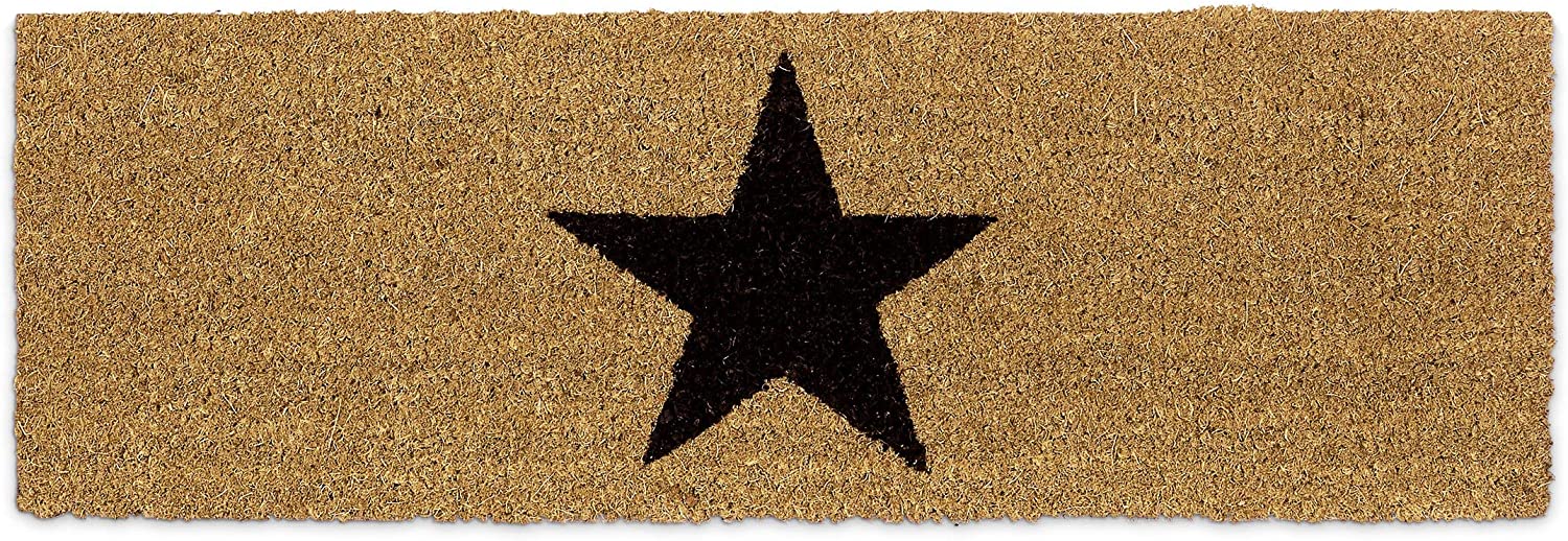 Voilà un paillasson facile d'entretien et de composition naturelle, un paillasson étroit avec une étoile comme motif.