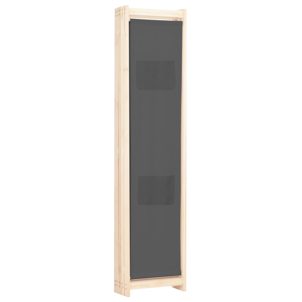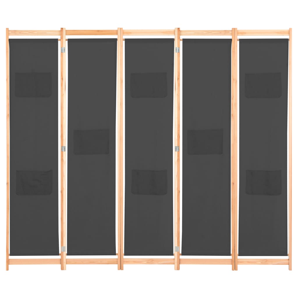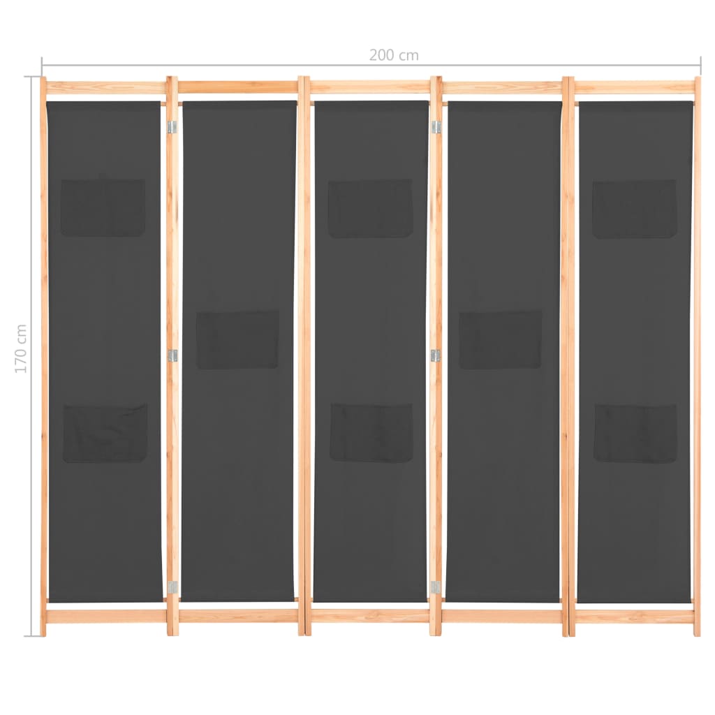 Paravent séparateur de pièce cloison de séparation décoration meuble 5 panneaux gris 200 x 170 x 4 cm tissu 0802085