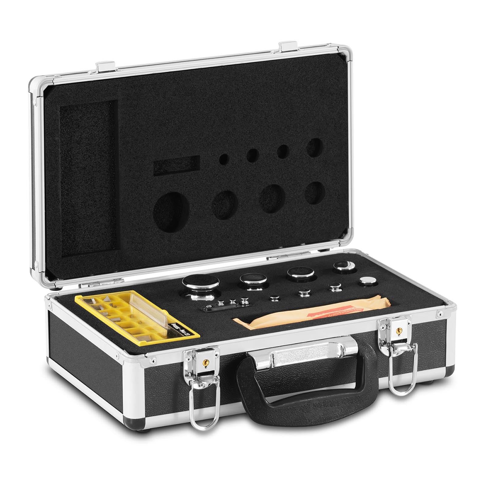 Accessoires – poids livrés dans une cassette en aluminium, avec un étui, des pincettes, un pinceau de dépoussiérage et des gants