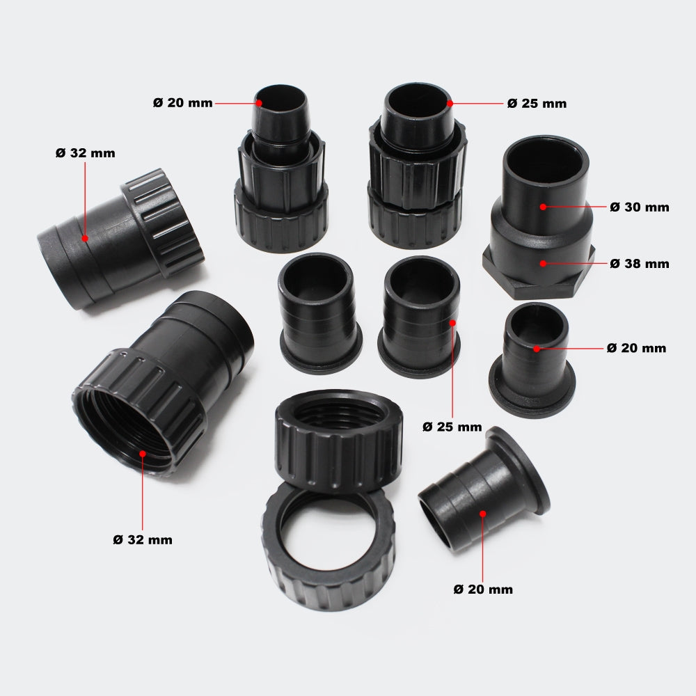 Raccordement de tuyau Ø / Pouce 20 mm/ 25 mm / 30 mm / 32 mm / 38 mm.
