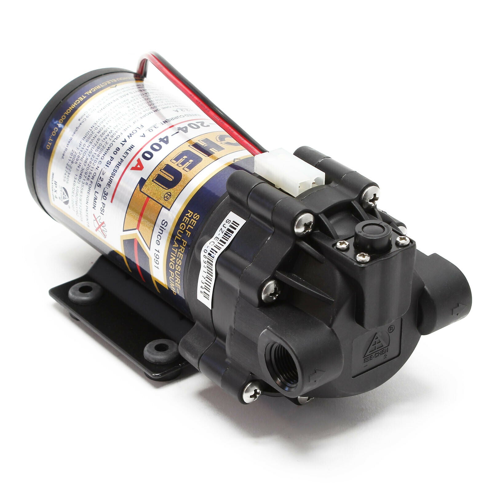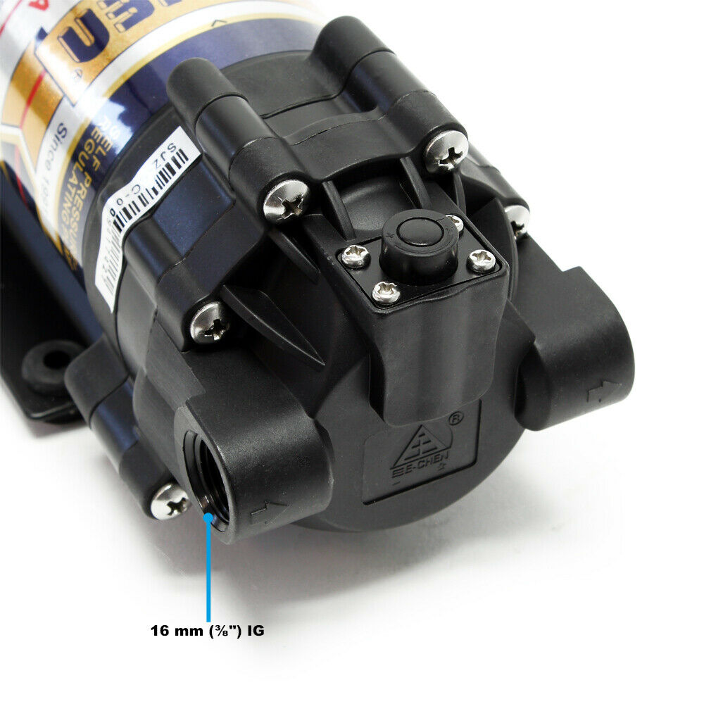 Une pompe booster à membrane intégrée au système de filtration à osmose inverse augmente la pression à l’intérieur du système et accroît la quantité d’eau filtrée ainsi que sa qualité.