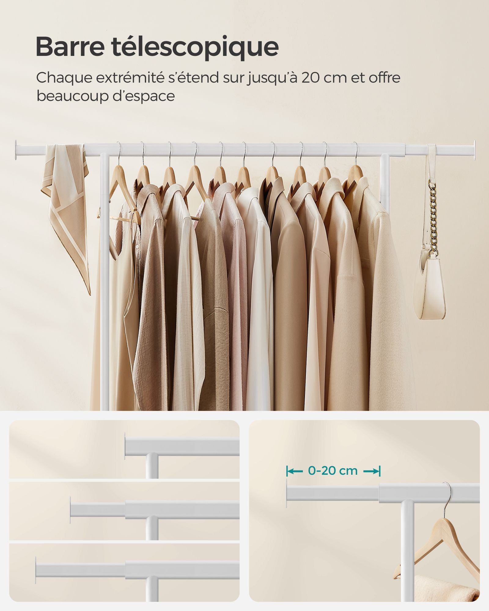 Portant à vêtements sur roulettes 45,4 x (92-132) x 160 cm blanc 12_0007013