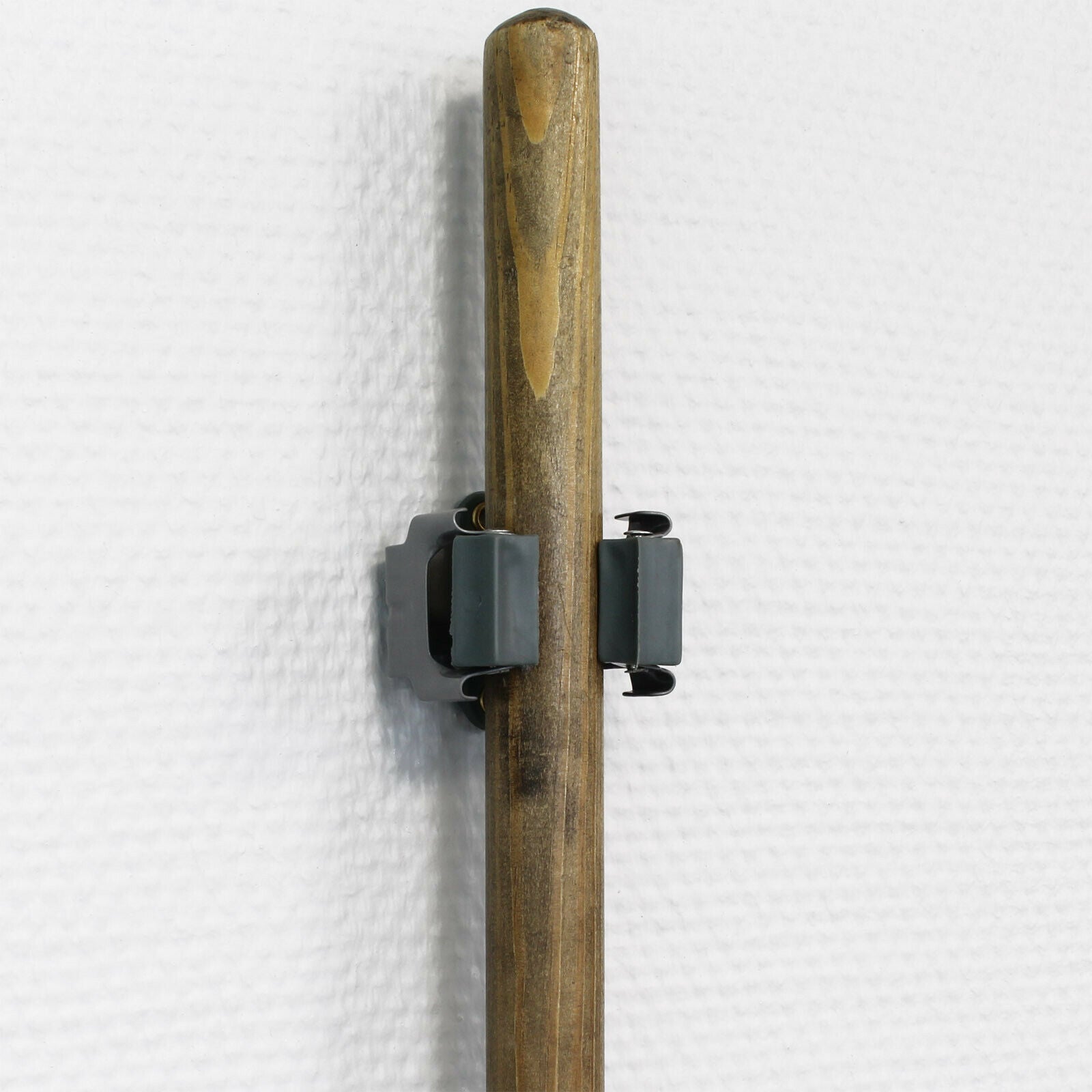Les supports en acier de haute qualité et d‘application universelle, se fixent au mur à l‘aide de 2 vis seulement et sont compatibles avec la plupart des manches de différents outils de nettoyage ou de jardinage, qui ont une norme standard maximale de 5 cm.