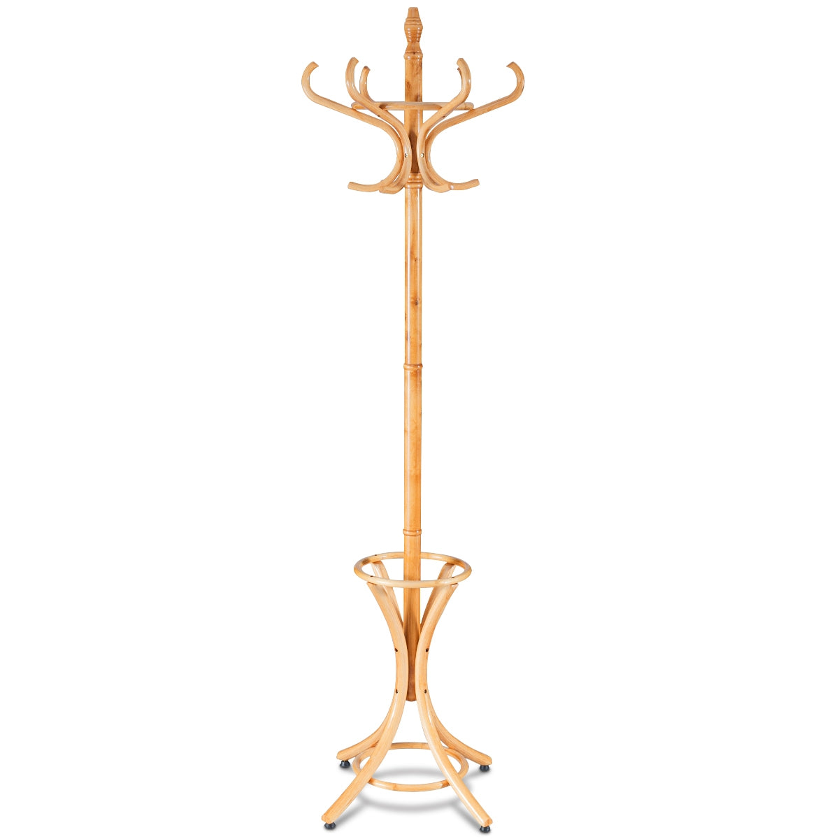 Porte manteau sur pieds 51 x 51 x 184 cm avec 12 crochets robustes design contemporain en bois naturel 20_0019565