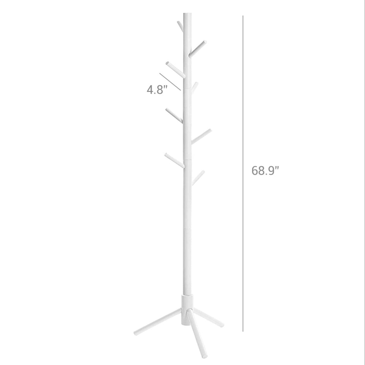 Portemanteau en bois massif porte-vêtement avec 8 crochets pour vêtements sacs veste pour entrée couloir blanc 12_0007118