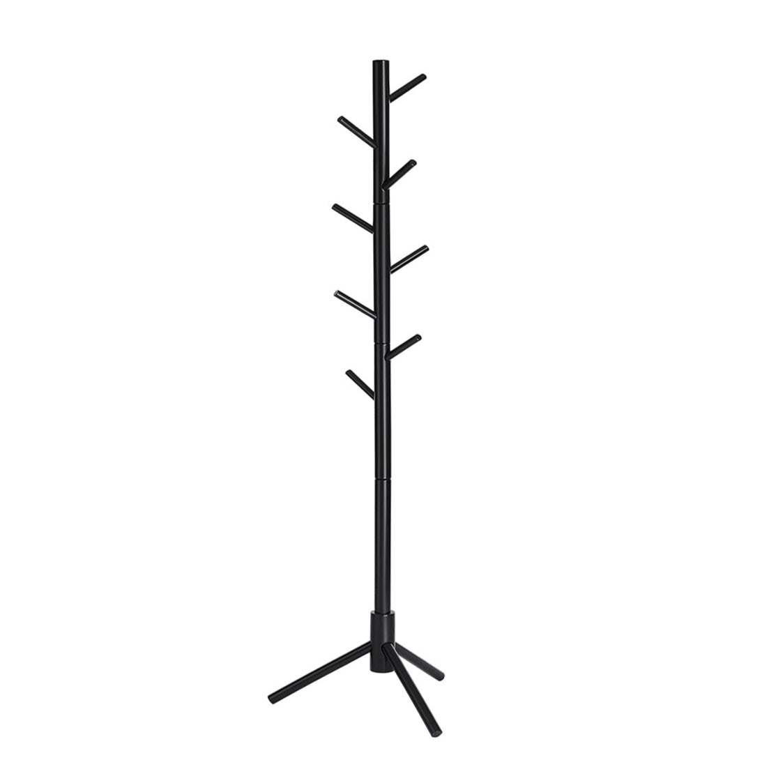 Portemanteau en bois massif porte-vêtement avec 8 crochets pour vêtements sacs veste pour entrée couloir noir 12_0007119