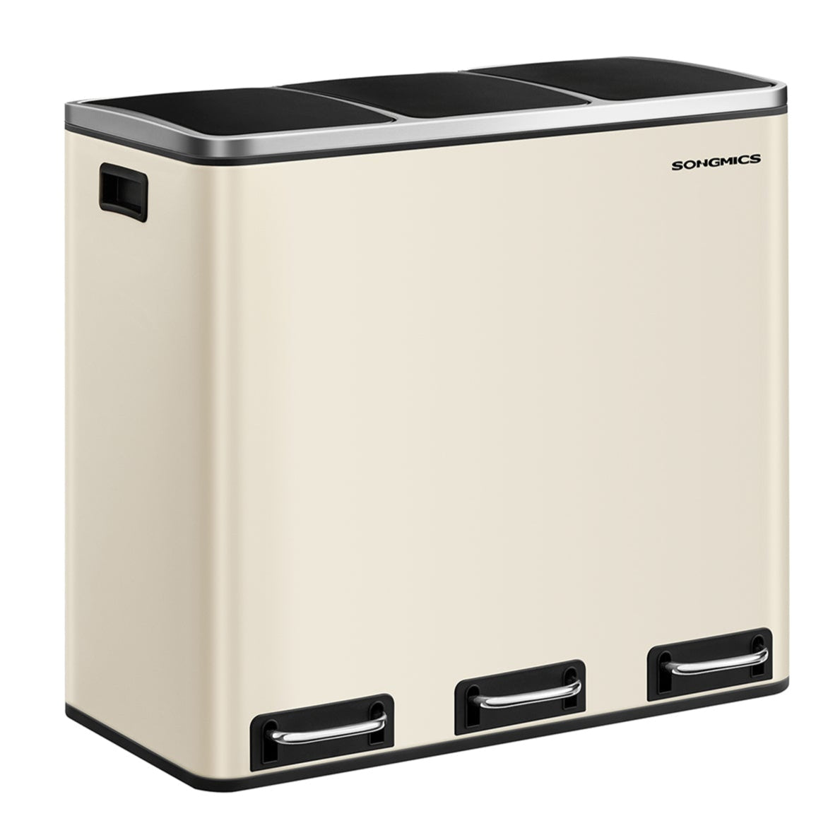 Poubelle de recyclage poubelle triple seau 3 x 18 litres compartiments mécanisme tampon pédales acier inoxydable resistant aux empreintes digitales poignée de transport beige 12_0007250