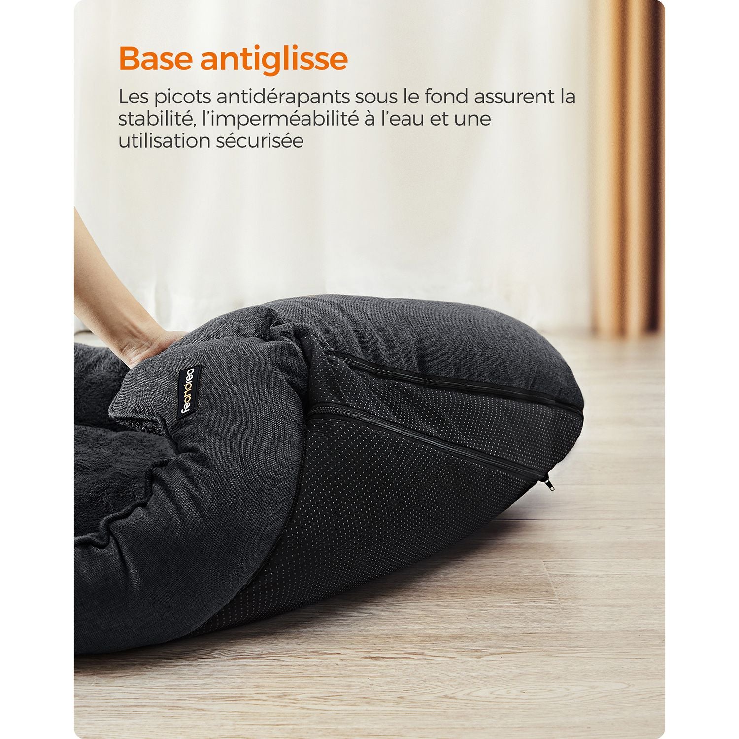 Résistant et durable, ce canapé constitue un lieu privilégié pour votre animal. Le tissu en peluche, doux et non irritant, offre une surface agréable, tandis que les rebords rehaussés servent d’appui-tête confortable. Les coutures soignées et la base antidérapante à picots assurent stabilité et protection contre l’humidité ou le froid du sol.
