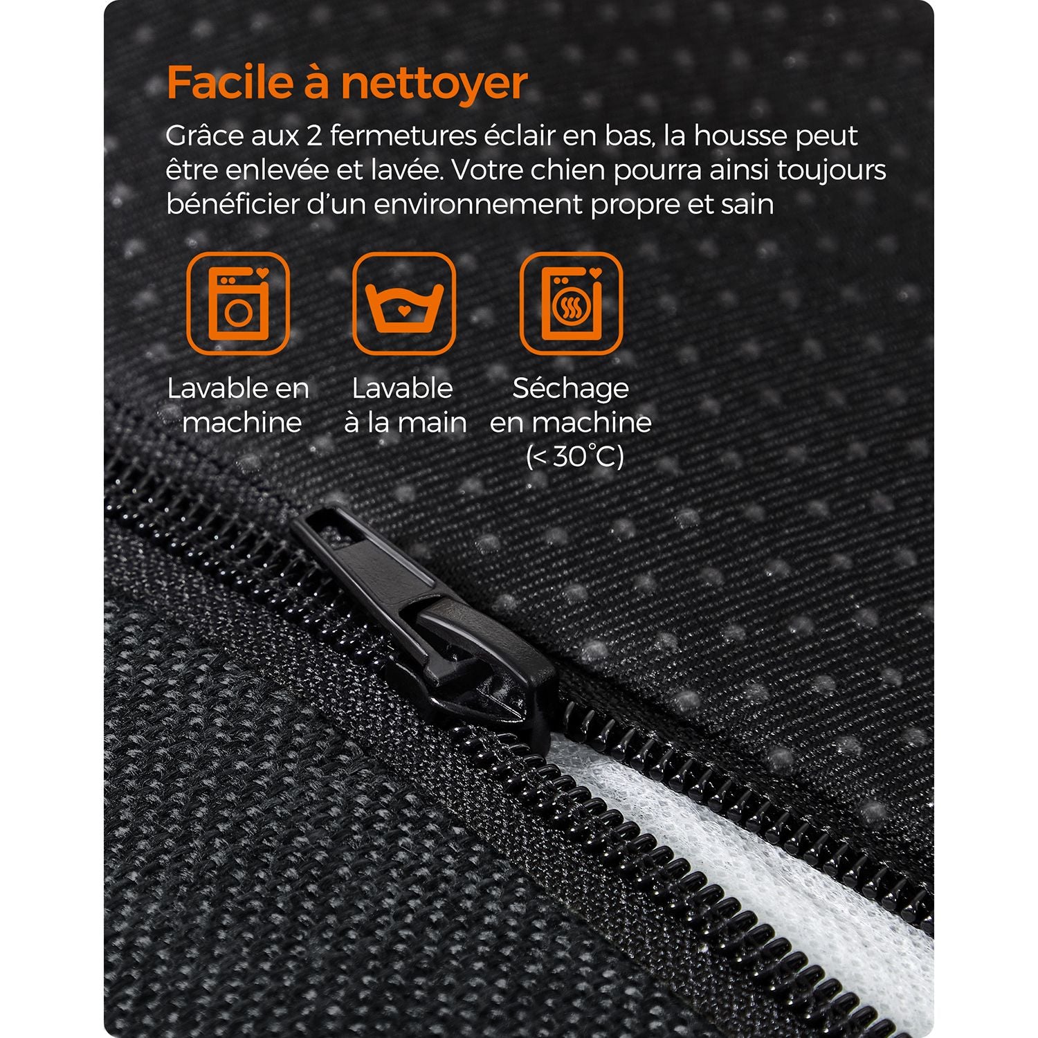 Pratique, ce lit est entièrement déhoussable et lavable en machine. Le nettoyage se fait donc facilement et sans perte de temps, pour garantir un couchage toujours propre et hygiénique.