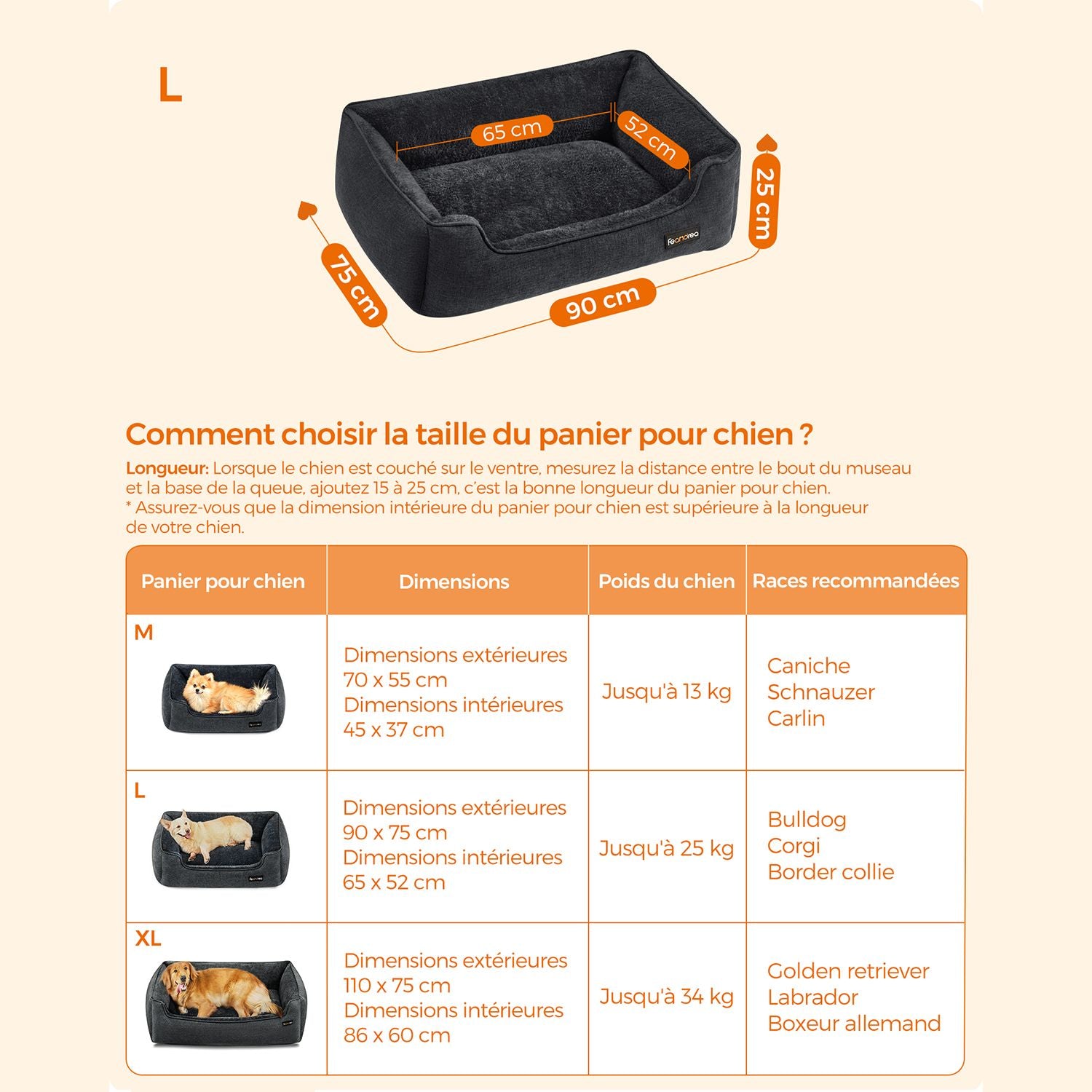 Panier pour chien canapé lit niche pour animaux housse amovible et lavable pour petits chiens 90 x 75 x 25 cm noir 12_0006794