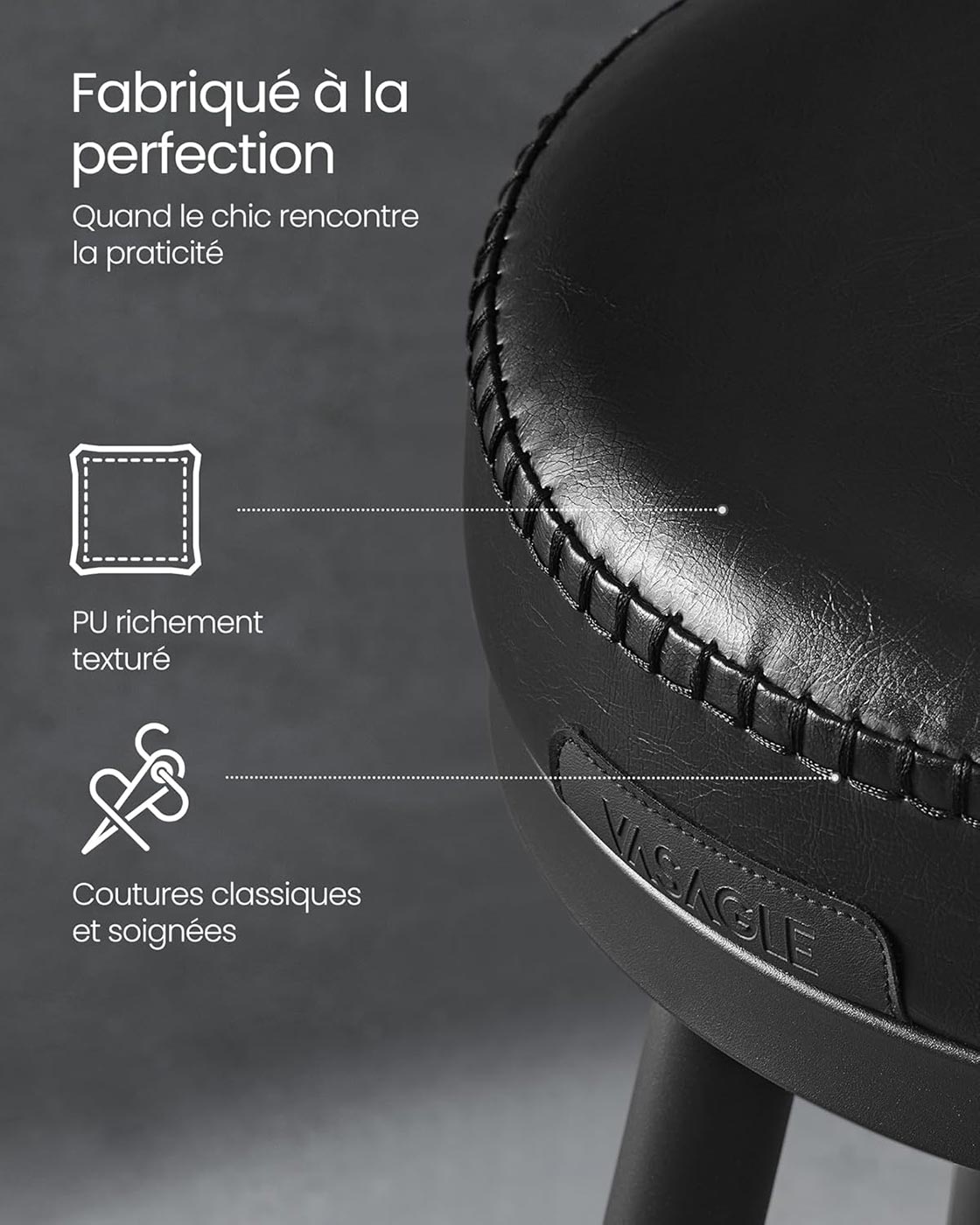 Ces tabourets de bar de la collection VASAGLE EKHO allient savoir-faire artisanal et modernité. Leur revêtement en PU raffiné, rehaussé de coutures soignées, s’associe à des pieds fuselés pour créer une silhouette élégante et contemporaine, parfaite pour rehausser le style de votre intérieur.