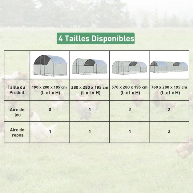 Enclos poulailler en acier galvanisé 190x280cm avec housse supérieure en tissu oxford parc grillagé pour poulet canard lapin 20_0006867