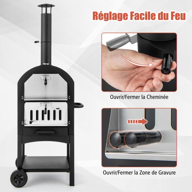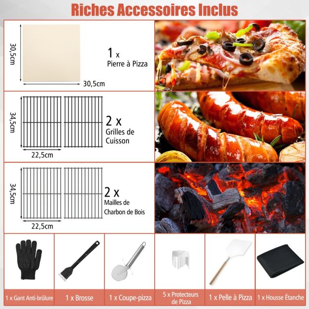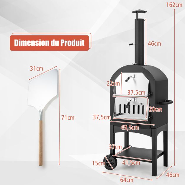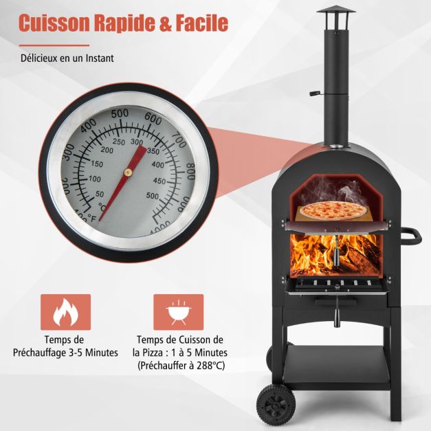 Four à pizza extérieur au charbon avec pelle à pizza pierre à pizza housse étanche cheminée et thermomètre double noir 20_0006242