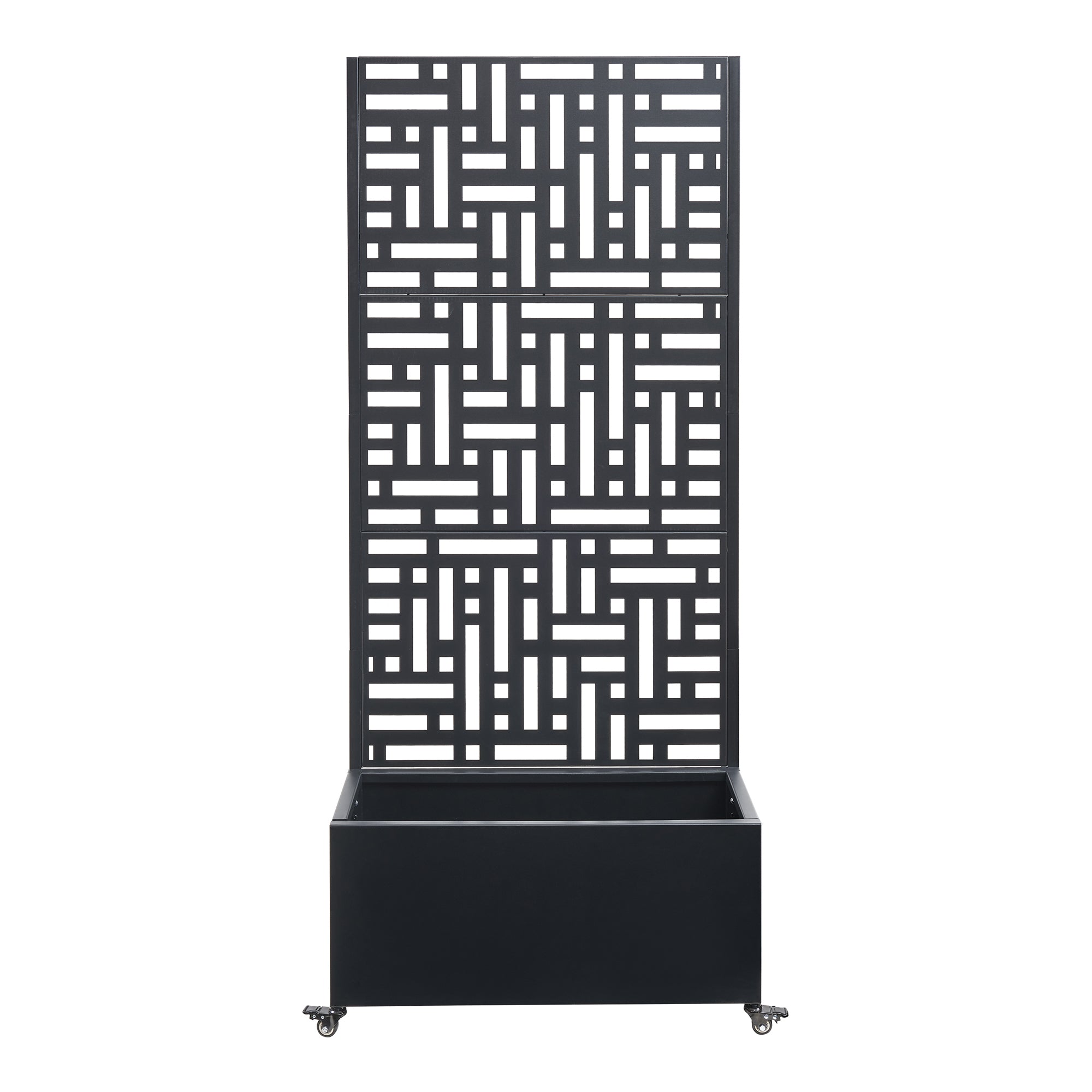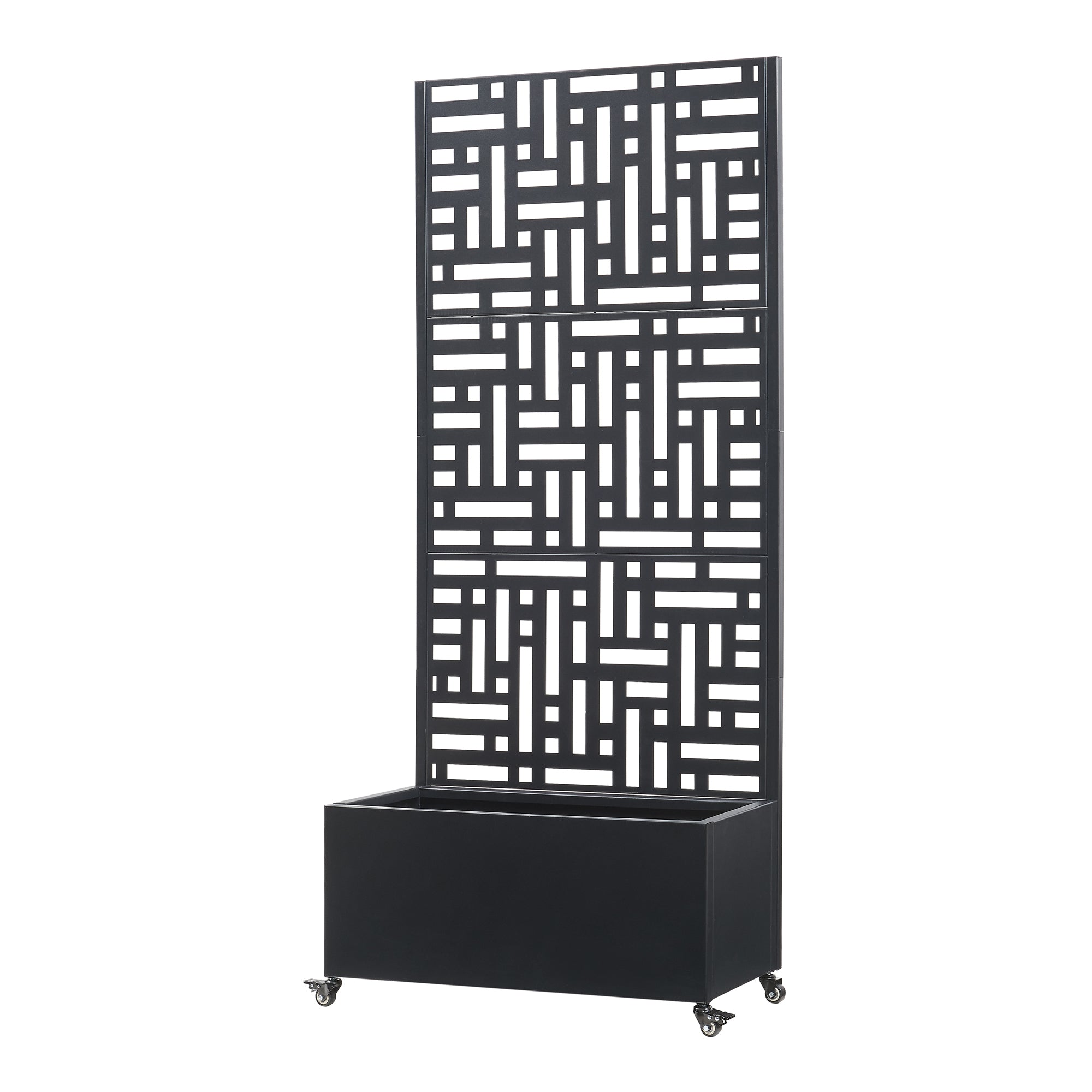 Idéale pour les espaces intérieurs et extérieurs, cette cloison avec bac à fleurs intégré apporte une touche sophistiquée à votre environnement. Que ce soit dans le salon, au bureau, dans le jardin, sur la terrasse ou le balcon, elle s'adapte parfaitement à tous les décors. Non seulement elle offre une séparation visuelle, mais elle délimite également les espaces, protège du vent et du soleil tout en préservant l'intimité. Son motif décoratif attire l'œil, ajoutant une touche de style moderne et intemporel à chaque endroit. Équipée de 4 roulettes, dont 2 avec freins, elle est stable mais également facile à déplacer.