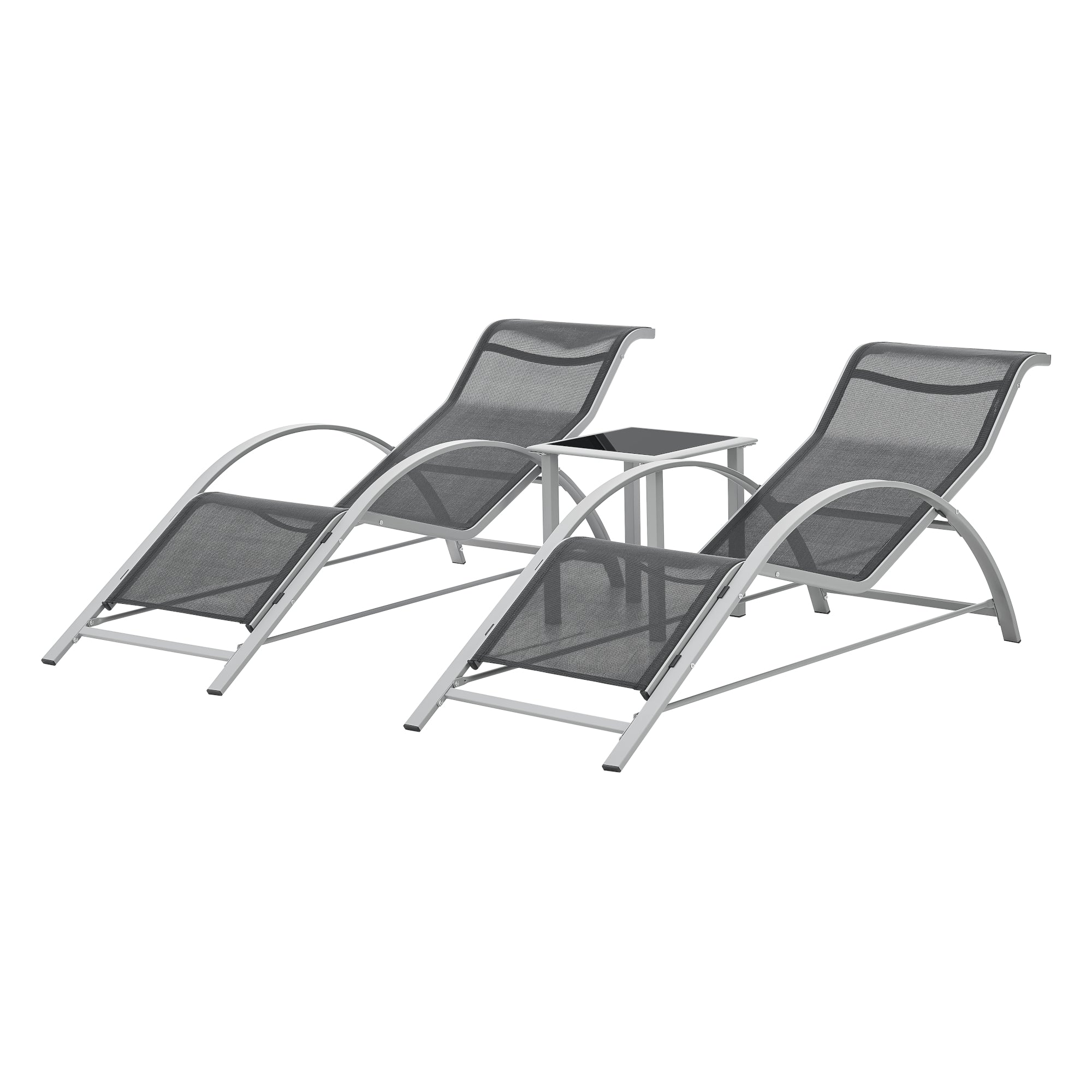 Lot de 3 meubles de jardin transats et table gris noir 03_0008780