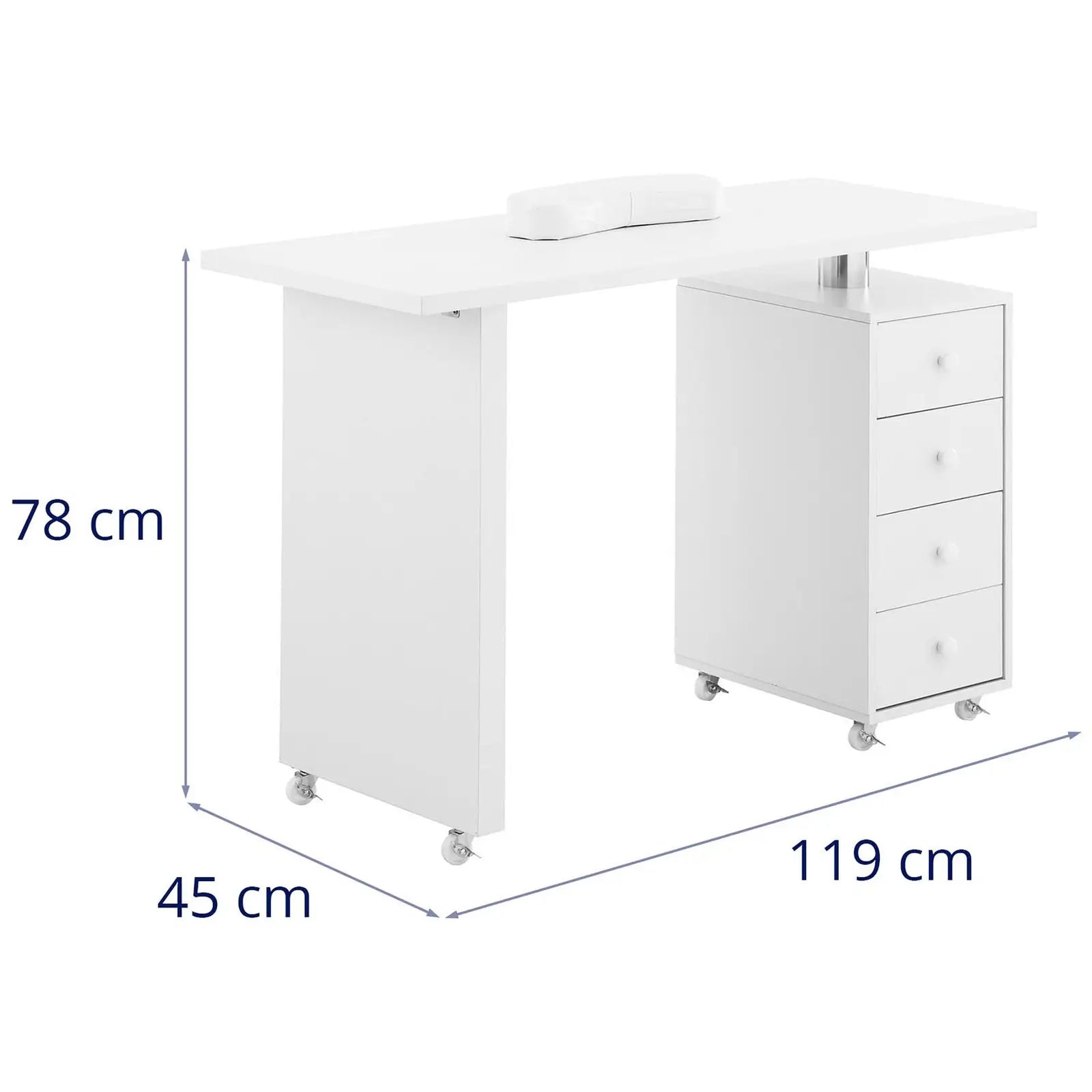 Table de manucure 119 x 45 x 77 cm 4 tiroirs 6 roues caoutchouc MDF blanc 14_0009977