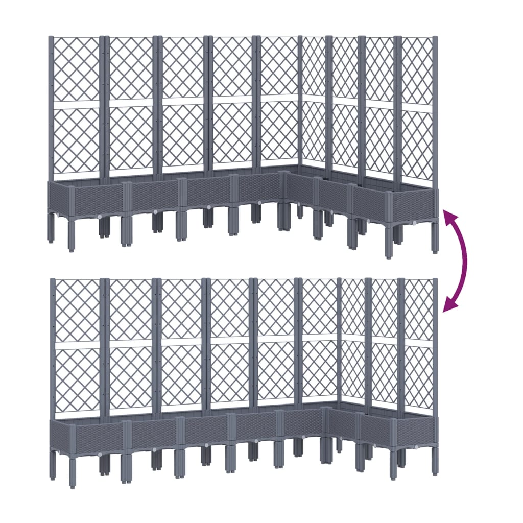 Jardinière bac lit surélevé plantes fleurs terrasse jardin avec treillis 200 x 160 x 142 cm PP gris 02_0038275