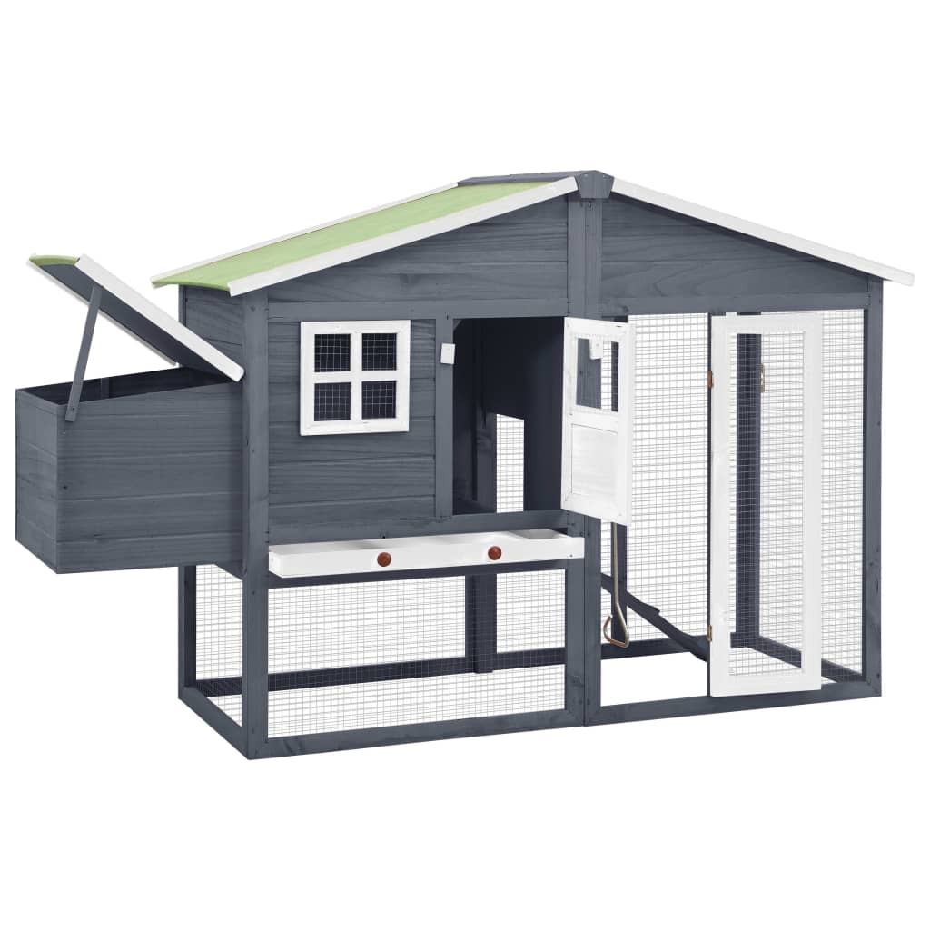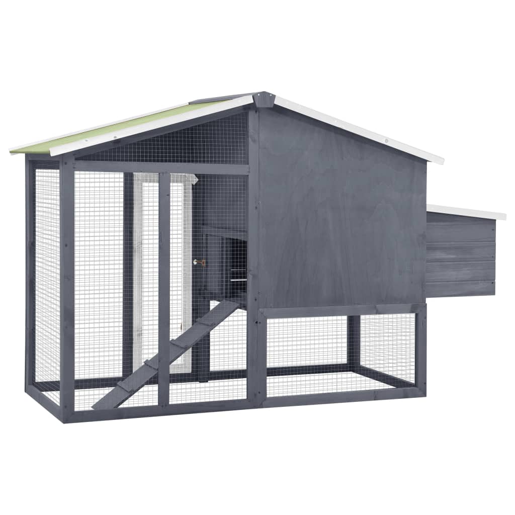 Poulailler avec nichoir 191 x 67 x 117 cm bois de sapin massif gris et blanc 02_0001672