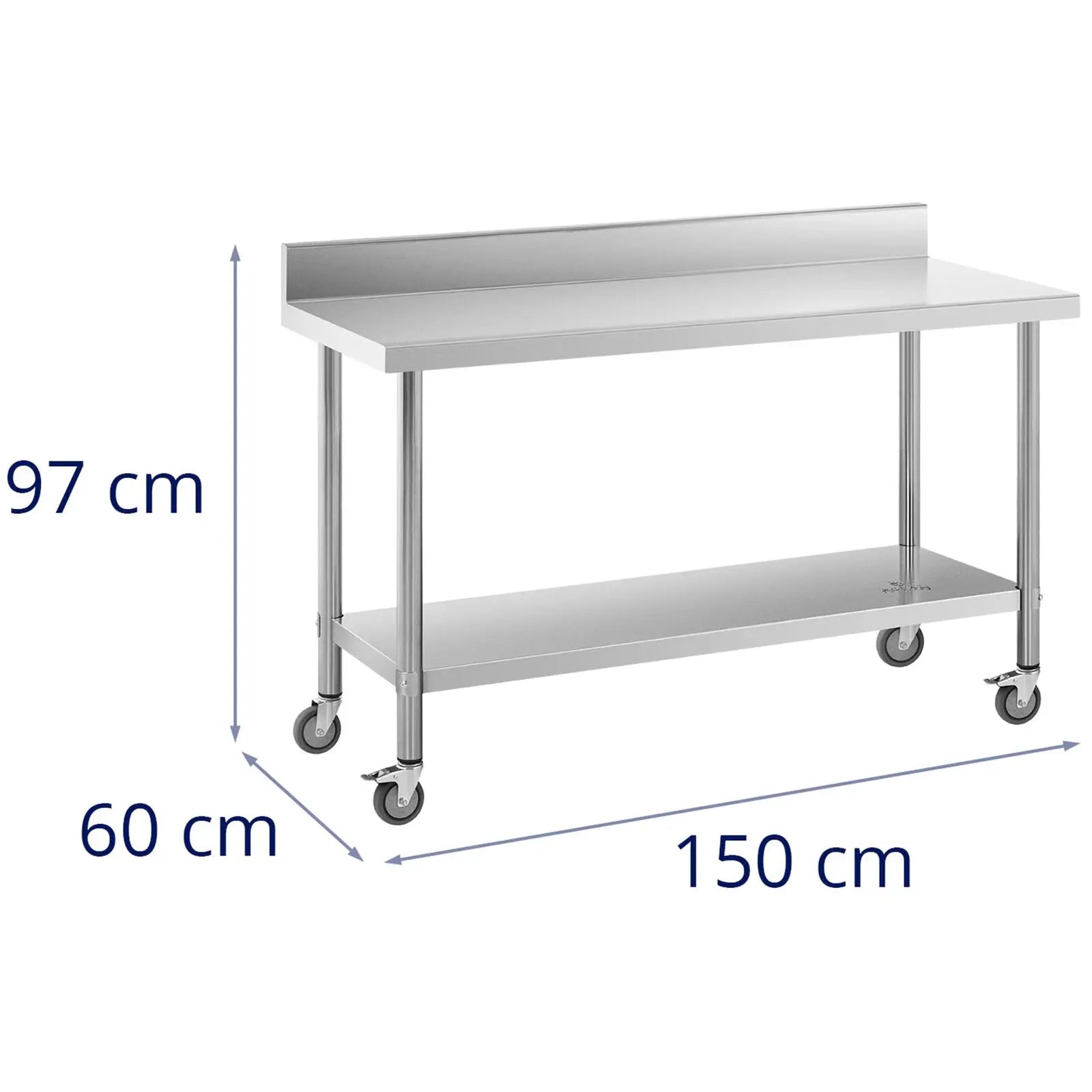 Table de travail professionnel premium 60 x 150 cm 160 kg dosseret acier inoxydable 14_0010020