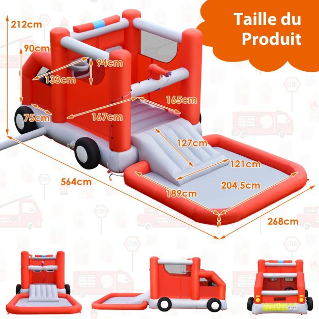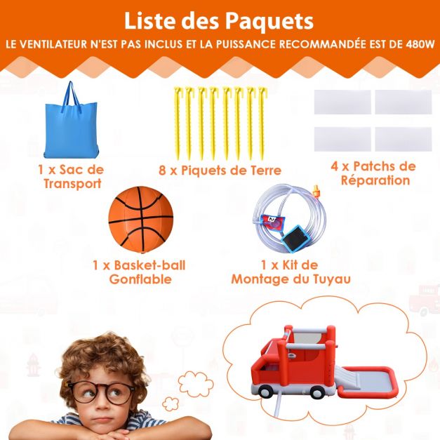 Toboggan aquatique gonflable sur thème voiture de pompiers avec piscine à eclaboussures ballon de basket sans gonfleur 20_0006046