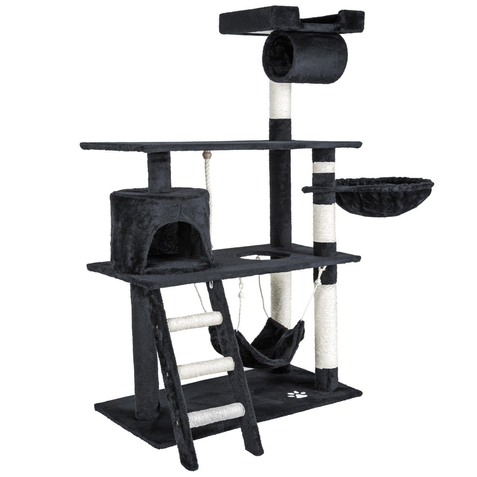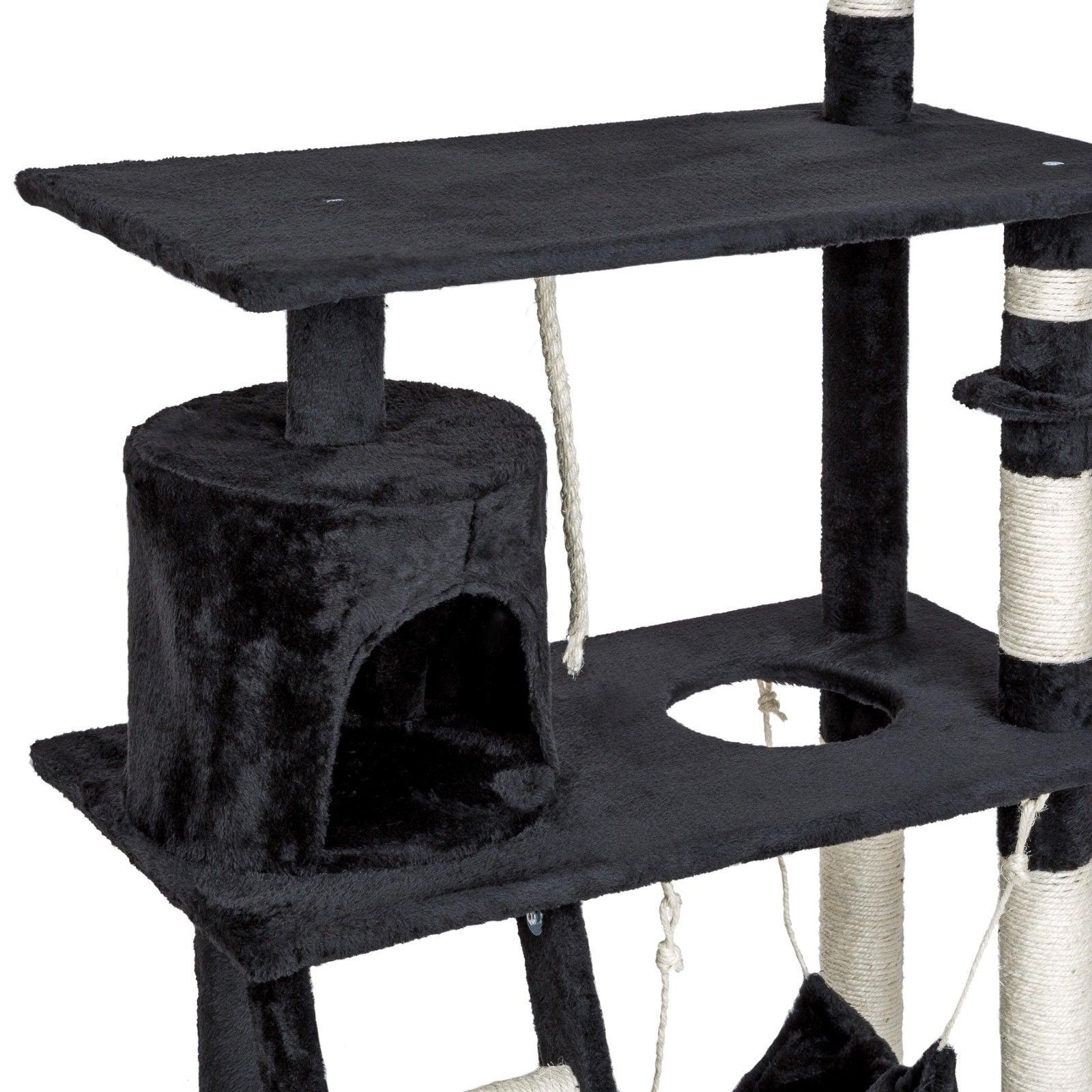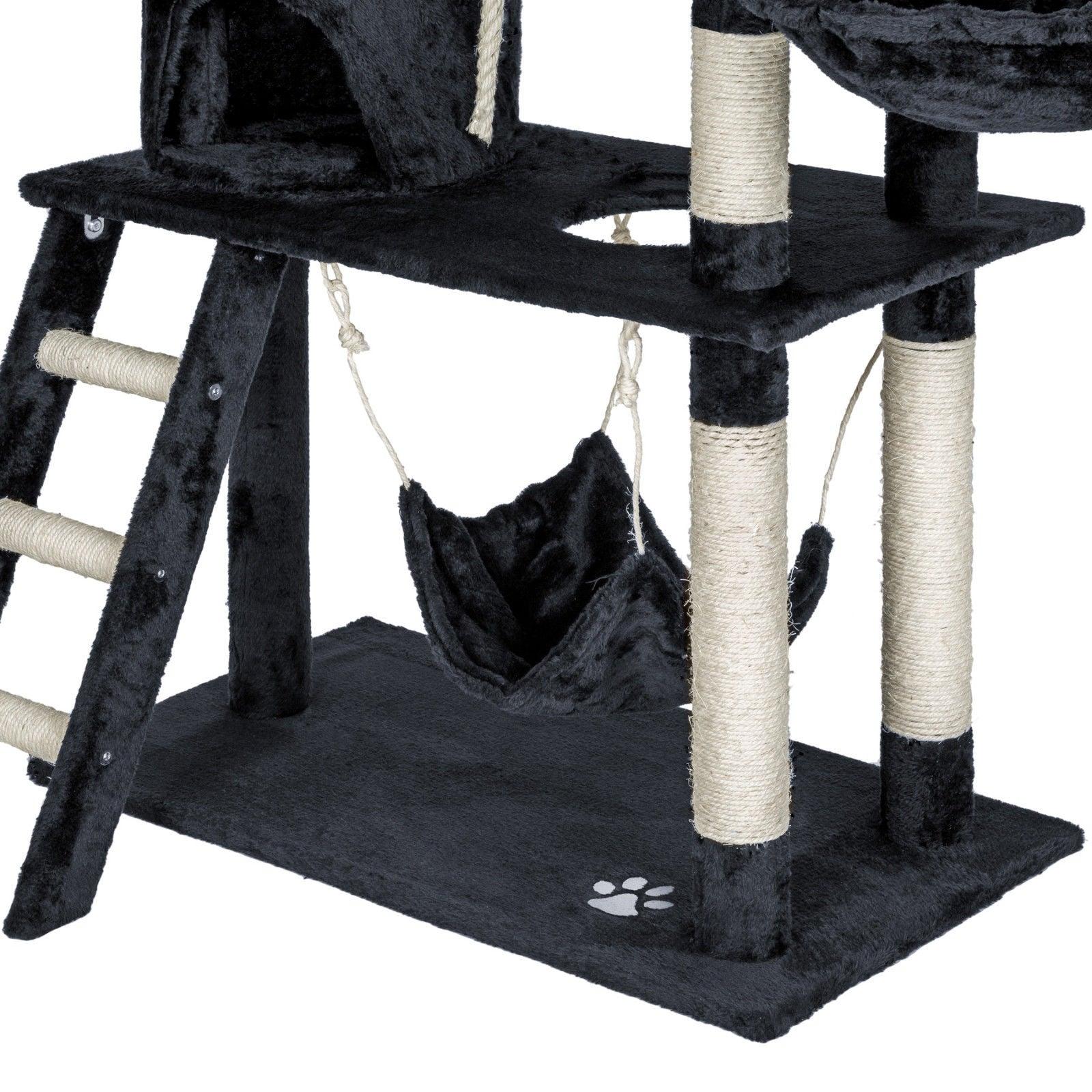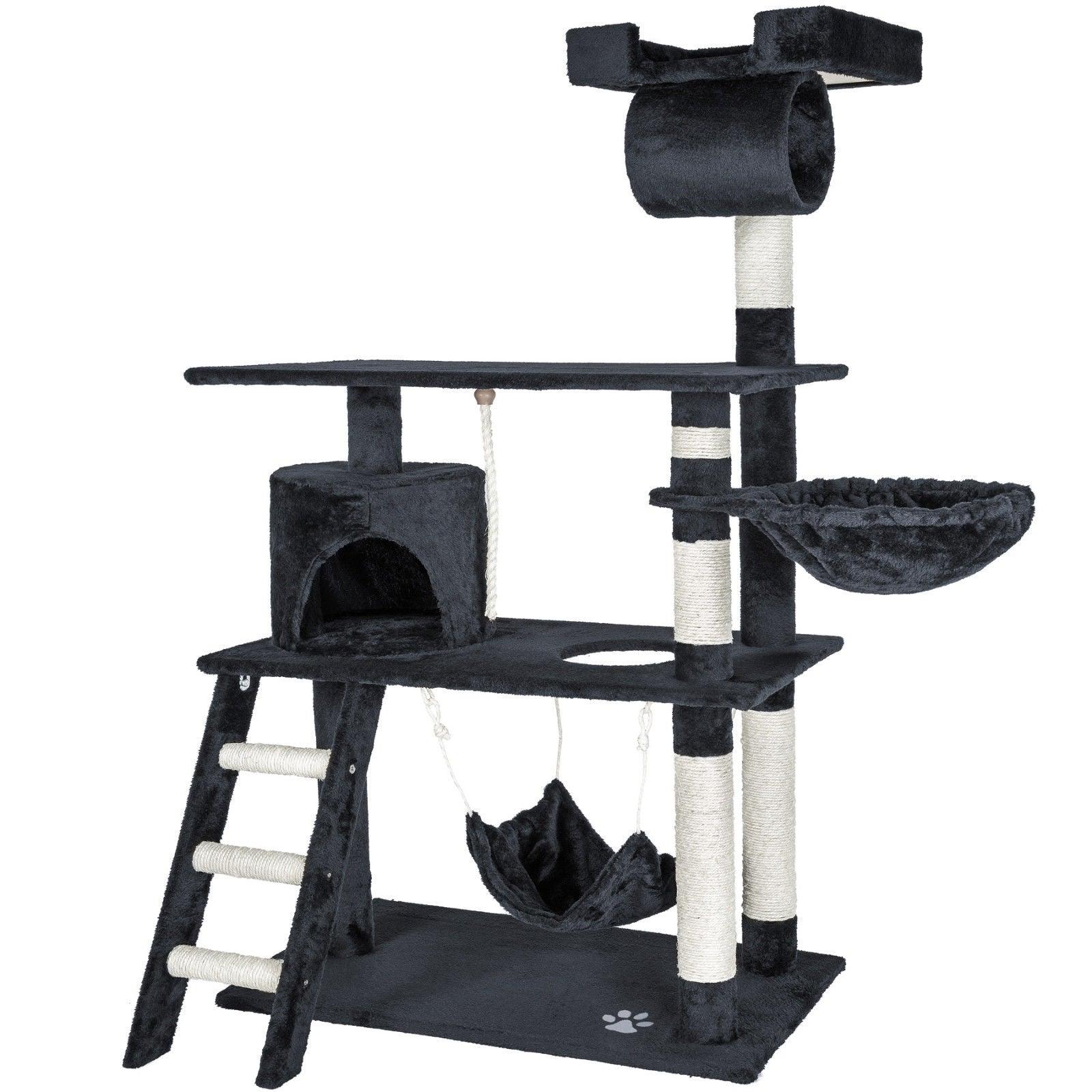 Arbre à chat griffoir grattoir niche jouet animaux peluché gris foncé 141 cm 08_0000512