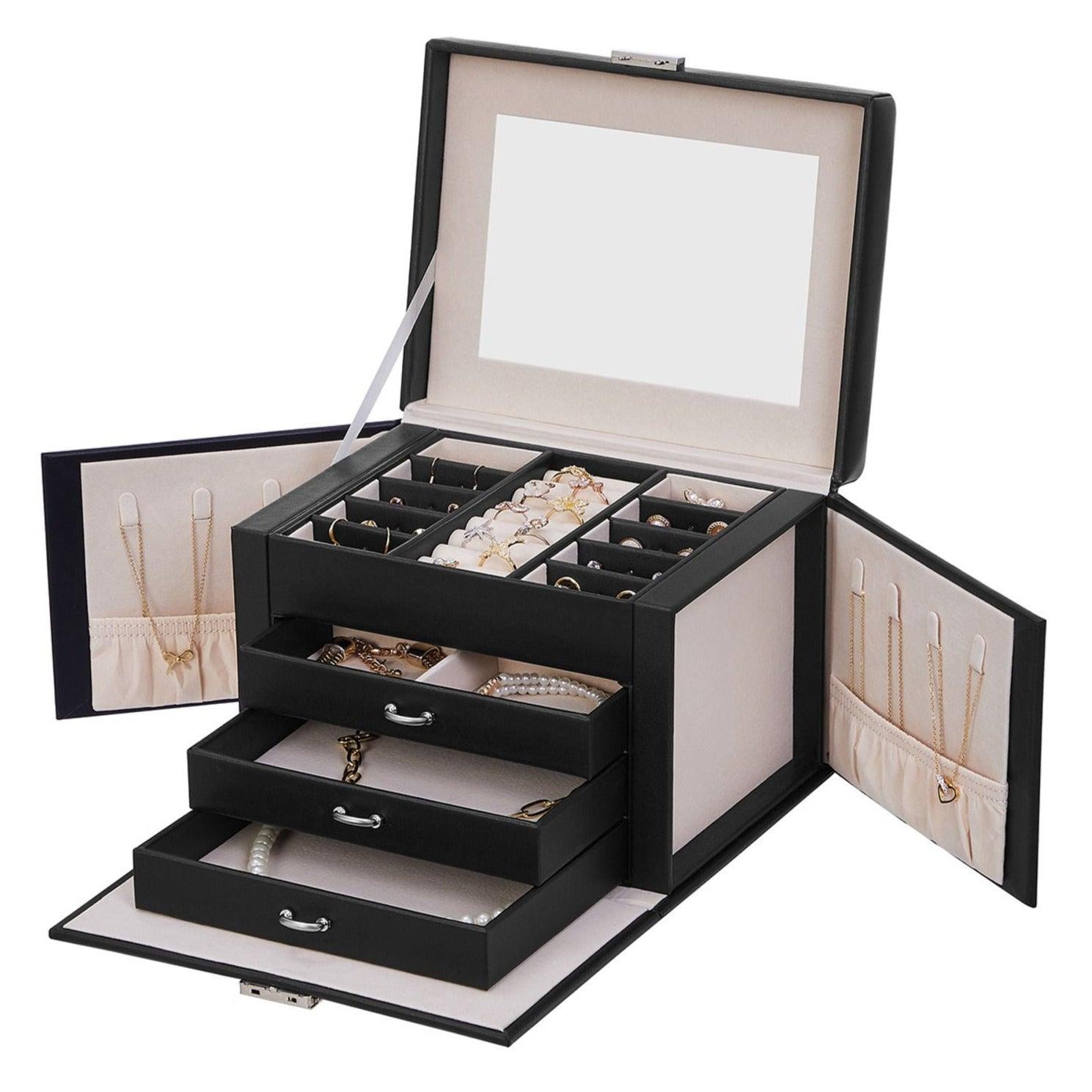 Boîte à bijoux coffre bijoux rangement beauté 4 niveaux organisateur avec plateaux revêtement velours noir 12_0002118