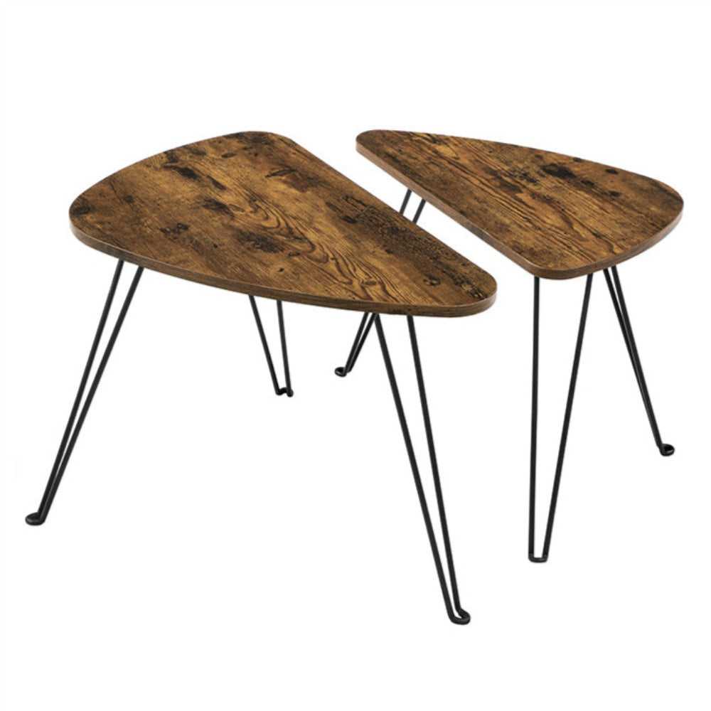Pourquoi pas sortir de l’ordinaire avec ces 2 tables indus brun rustique et noirs à la forme décalée ?