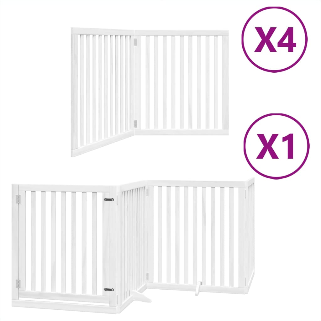 Barrière de sécurité pour chien animaux de compagnie porte pliable 12 panneaux bois de peuplier blanc 02_0023128